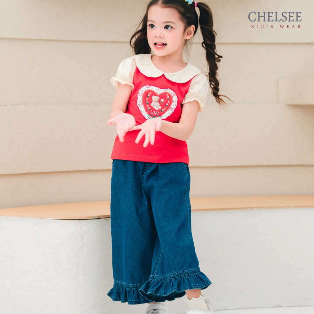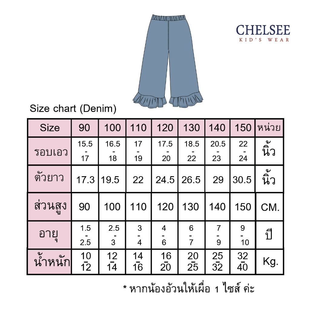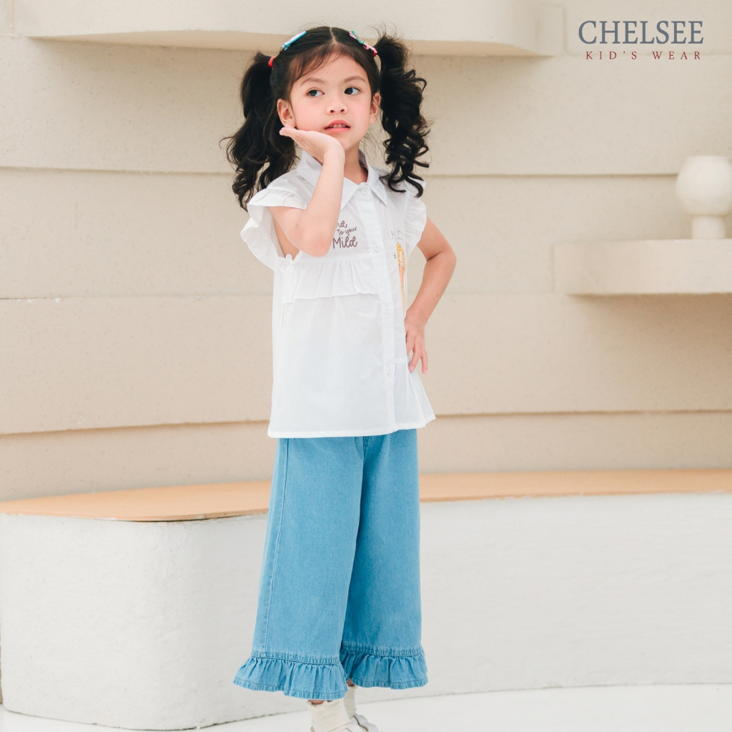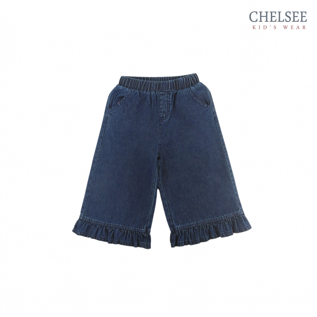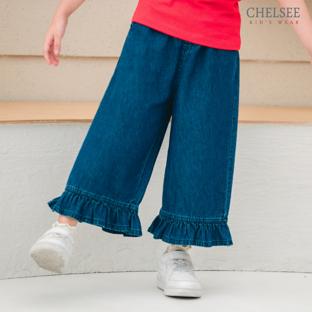 Chelsee กางเกงยีนส์ขายาว ปลายขาระบาย ไม่มีลาย ผ้ายีนส์(นิ่ม เบา) เด็กผู้หญิง อายุ 1.5-10 ปี กางเกงเด็ก รุ่น 238141