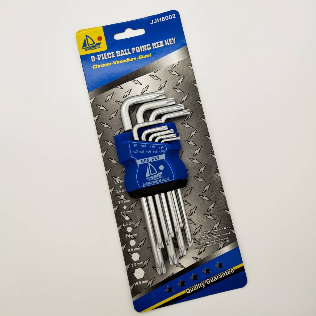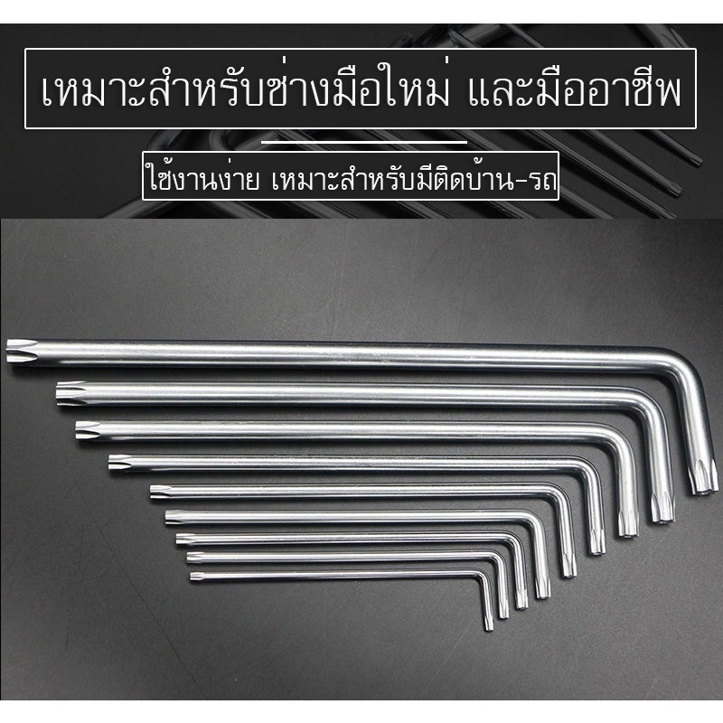 ชุดประแจหัวดาว ตัวแอล เครื่องมือช่าง ยาวพิเศษ 9 ชิ้น หัวตัด หัวบอล และ หัวดาว