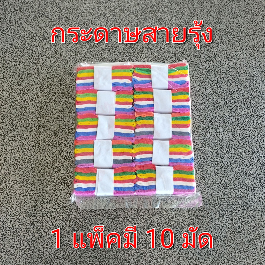 กระดาษสายรุ้ง7สี 1 แพ็คมี 10 มัด เหมาะสำหรับ ใส่คู่กับลูกโลก ประดับตกแต่งตามงานวัด งานมงคลต่างๆ สีสวย โดดเด่น สวยงาม