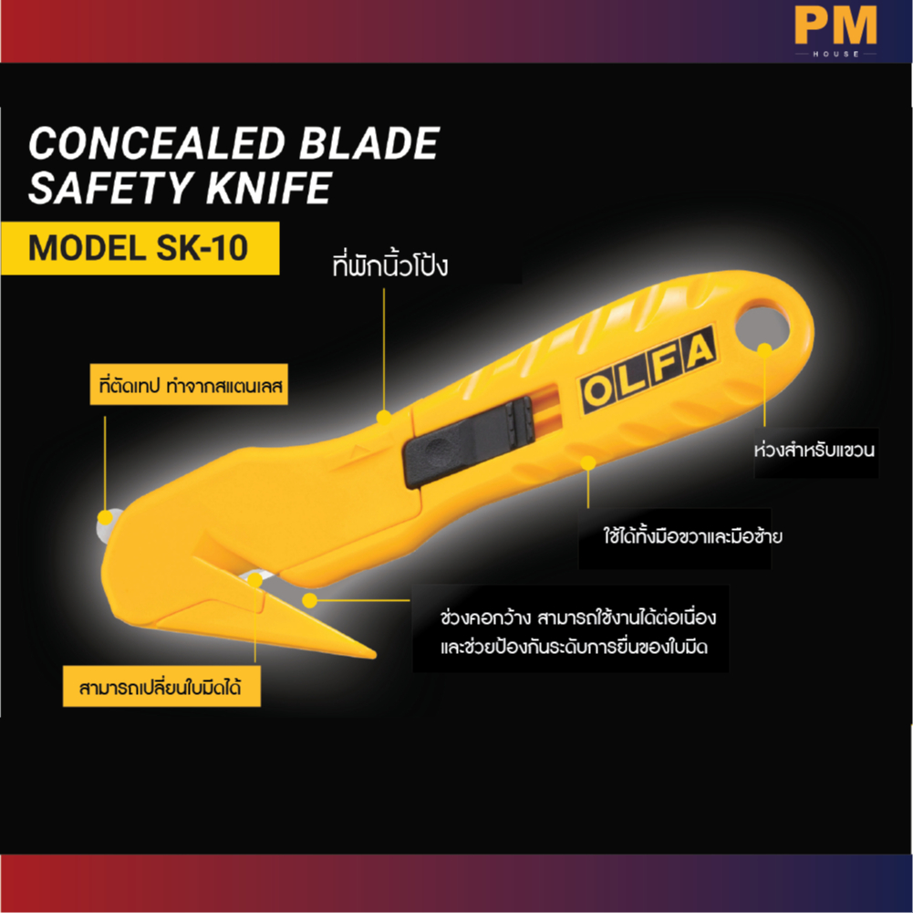 OLFA มีดเซฟตี้แบบตะขอ SK-10 คัตเตอร์แบบตะขอ และใบมีด