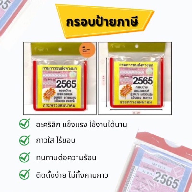 กรอบใส่ป้ายพรบ ภาษีรถยนต์แบบใสอะคริลิค รุ่นหนา 2 มิล ยกขอบสูง ขอบกาวสีใส