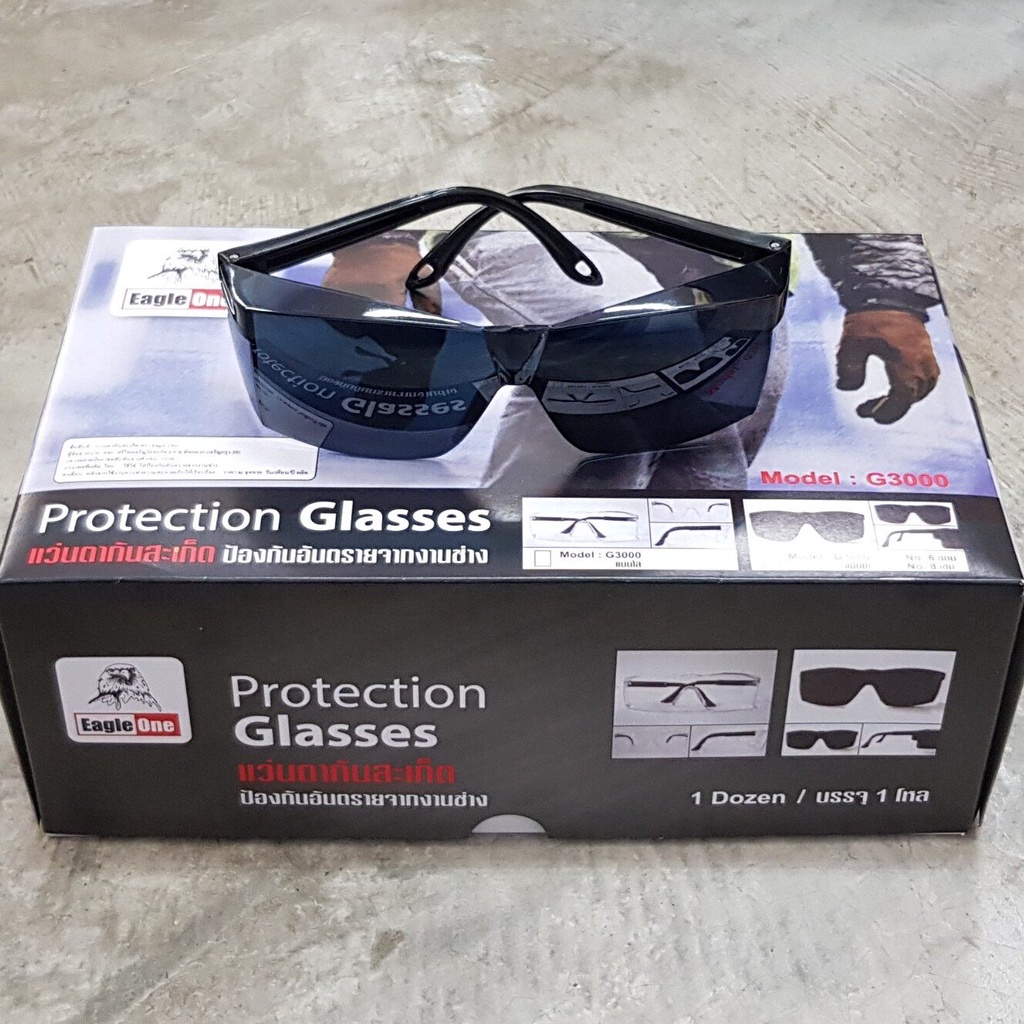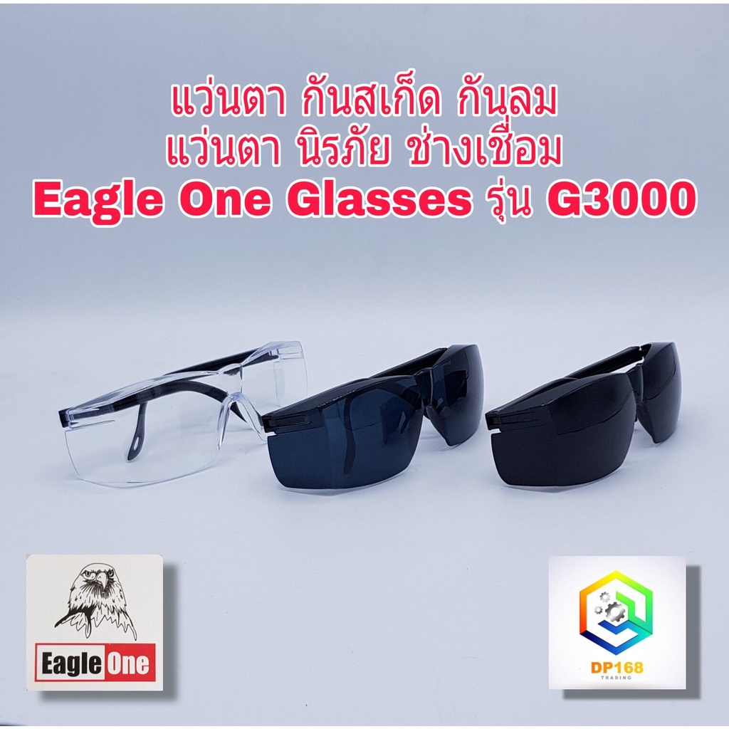 แว่นตากันสะเก็ด เเว่นตากันลม เเว่นตานิรภัย เเว่นตาช่างเชื่อม Eagle One Safety Glasses รุ่น G3000 สีใส สีดำอ่อน สีดำเข้ม