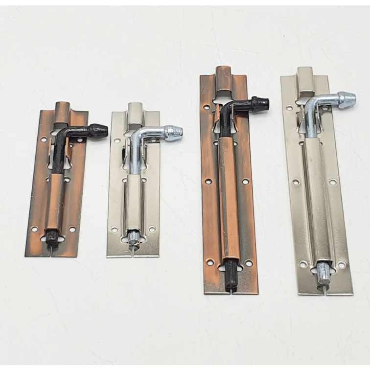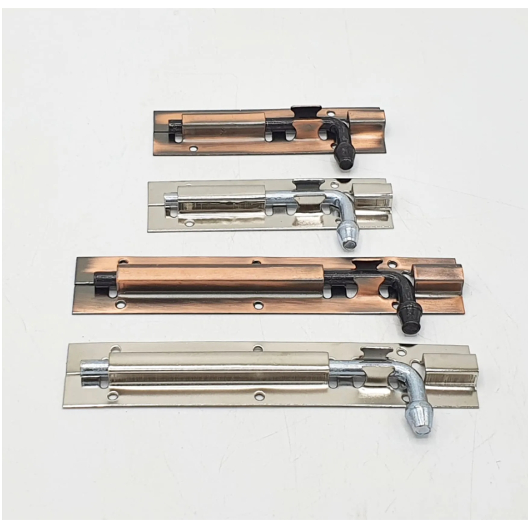 กลอนเหล็กเรียบ กลอนประตู หน้าต่าง สีรมดำ(AC) , สีขาว (CR) มีให้เลือกขนาด 4" , 6" พร้อมสกรูติดตั้ง กลอนหล็ก กลอน