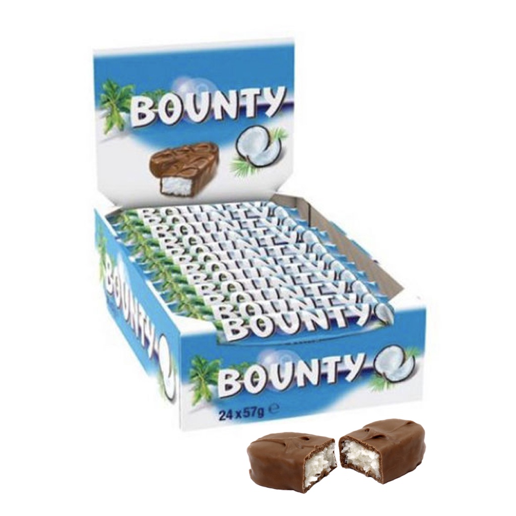 Bounty Chocolate Bar 24 x 57g (1 box) ++ บาว์นตี้ ช็อกโกแลตบาร์ 20 x 57 กรัม (1 กล่อง)