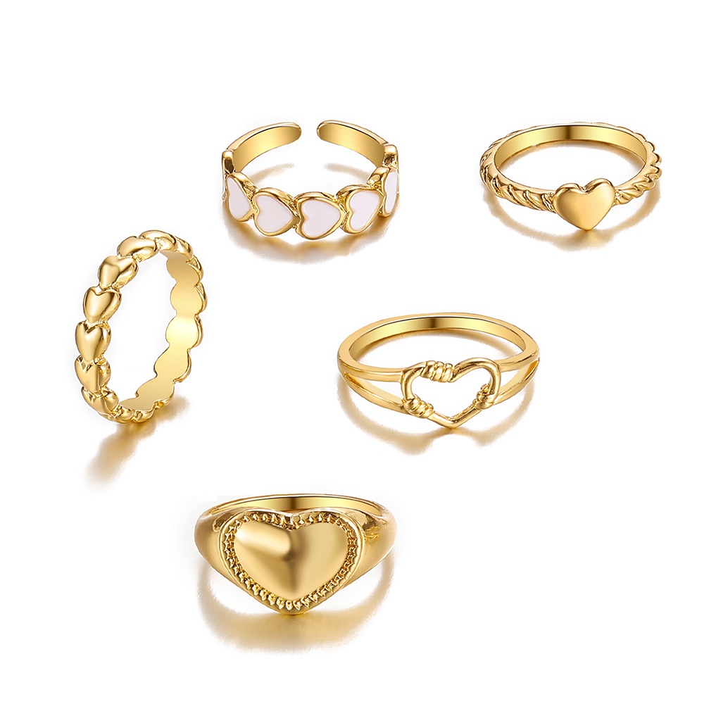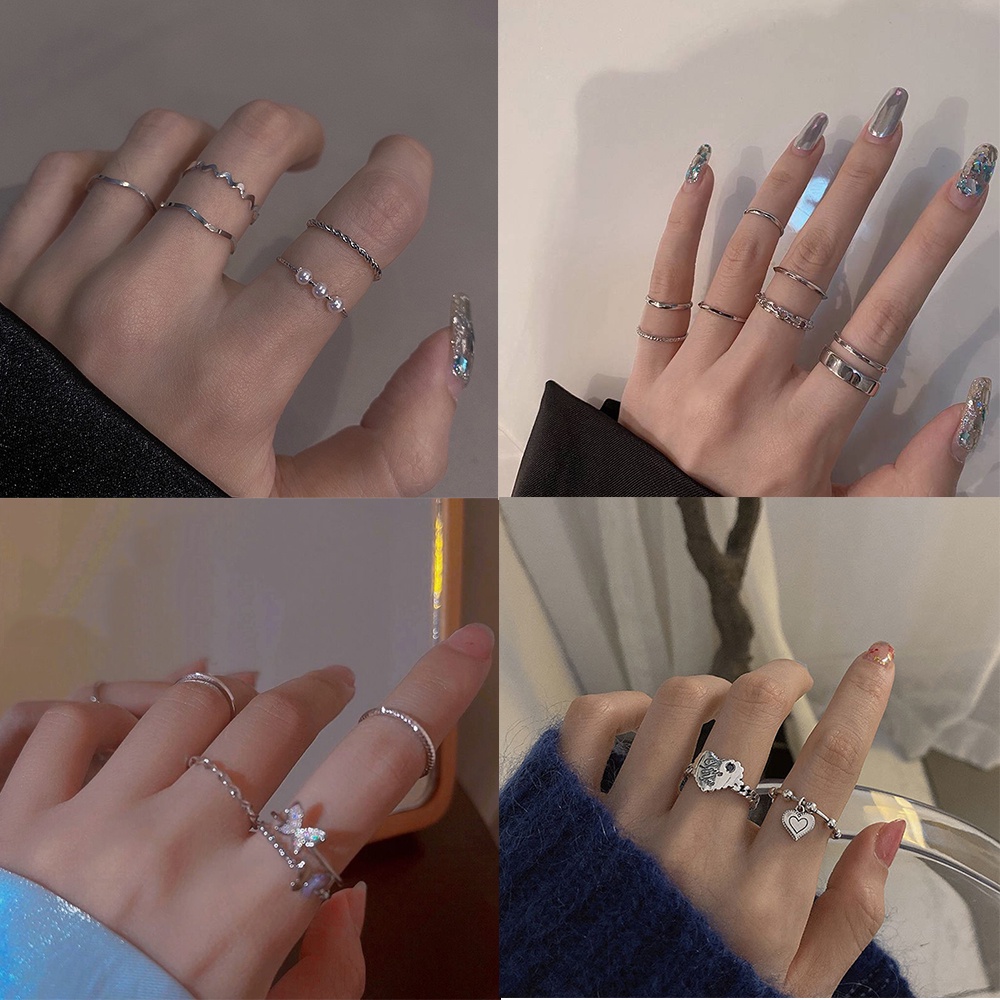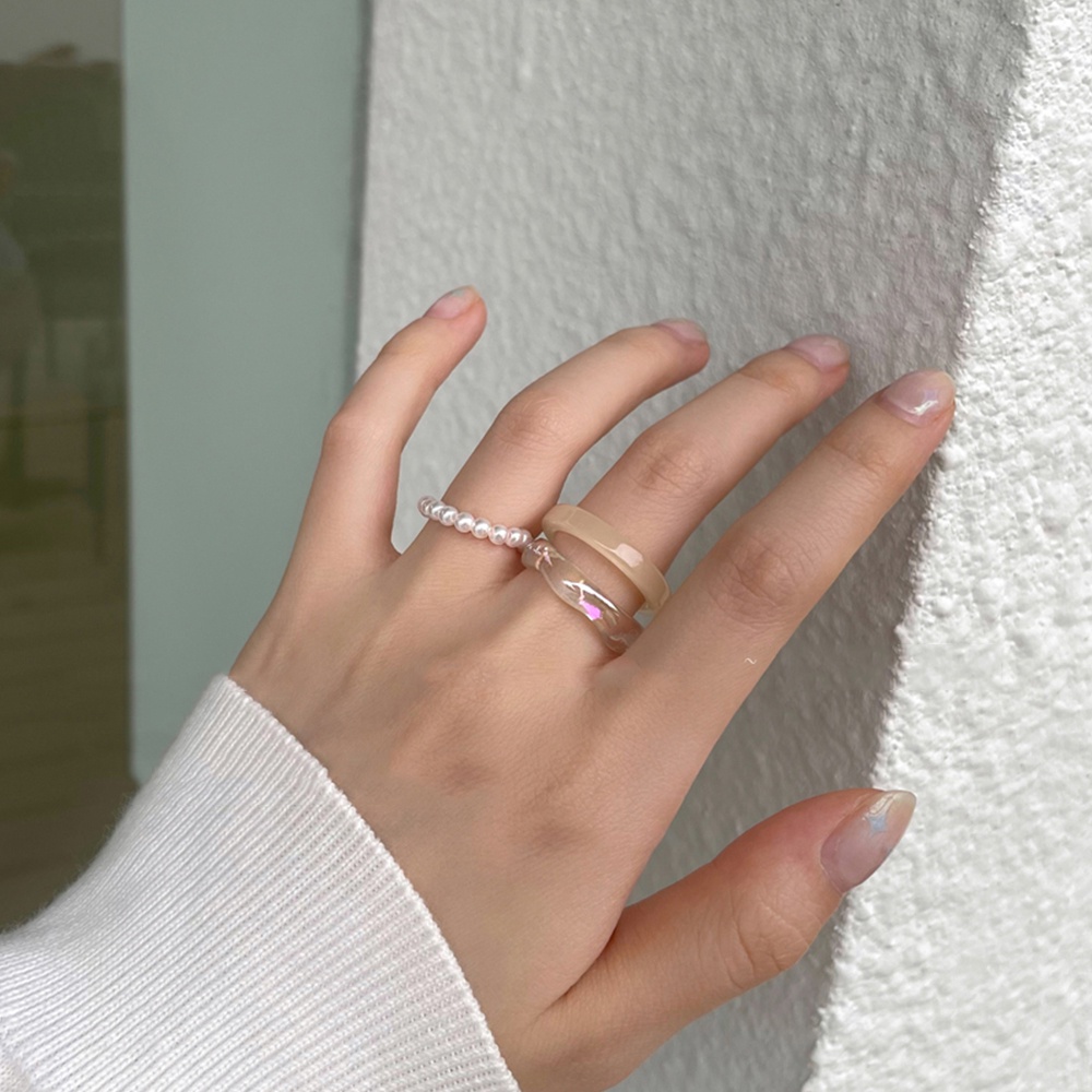 IFYOU ชุดแหวนนิ้วมือ ประดับไข่มุก รูปหัวใจ หน้ายิ้ม เครื่องประดับ สไตล์เกาหลี สําหรับผู้หญิง