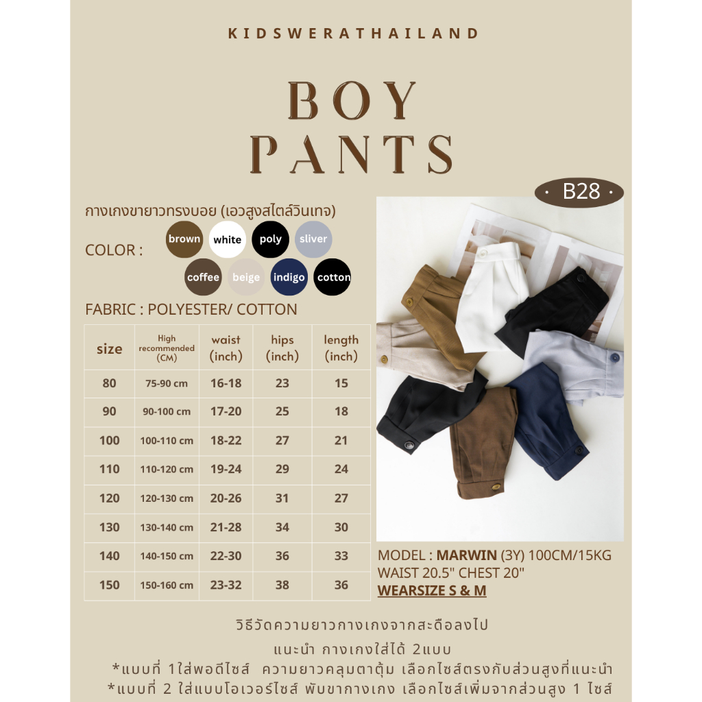 ‼ตรงปกชัวร์‼ 80-150 cm กางเกงขายาวเด็ก กางเกงเด็กเอวสูง ทรงบอย กางเกงเด็กผู้ชาย Boy Pants
