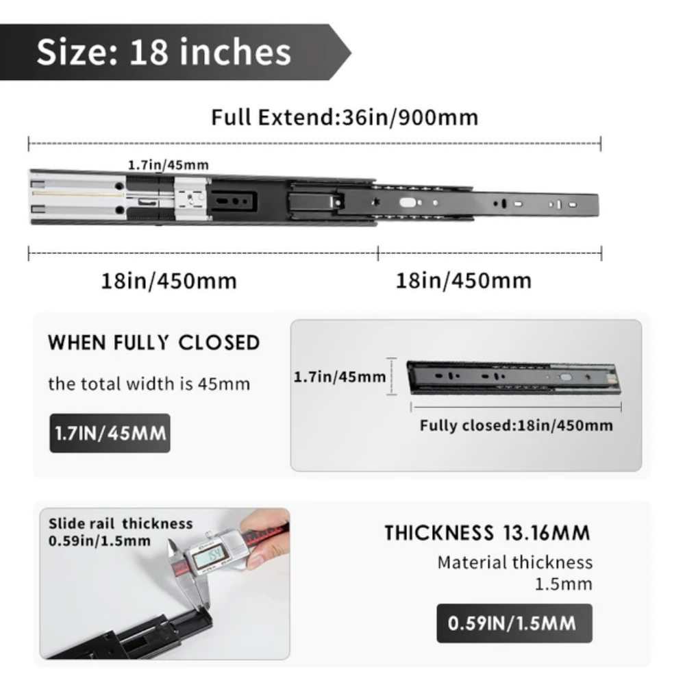 รางสไลด์ลิ้นชัก รางลิ้นชักซ่อน SOFT CLOSE กดกระเด้ง ลิ้นชัก รางสไลด์ รางลิ้นชัก ลูกปืน 2ตอน 3ตอน ปิดนุ่มนวล สแตนเลส 304