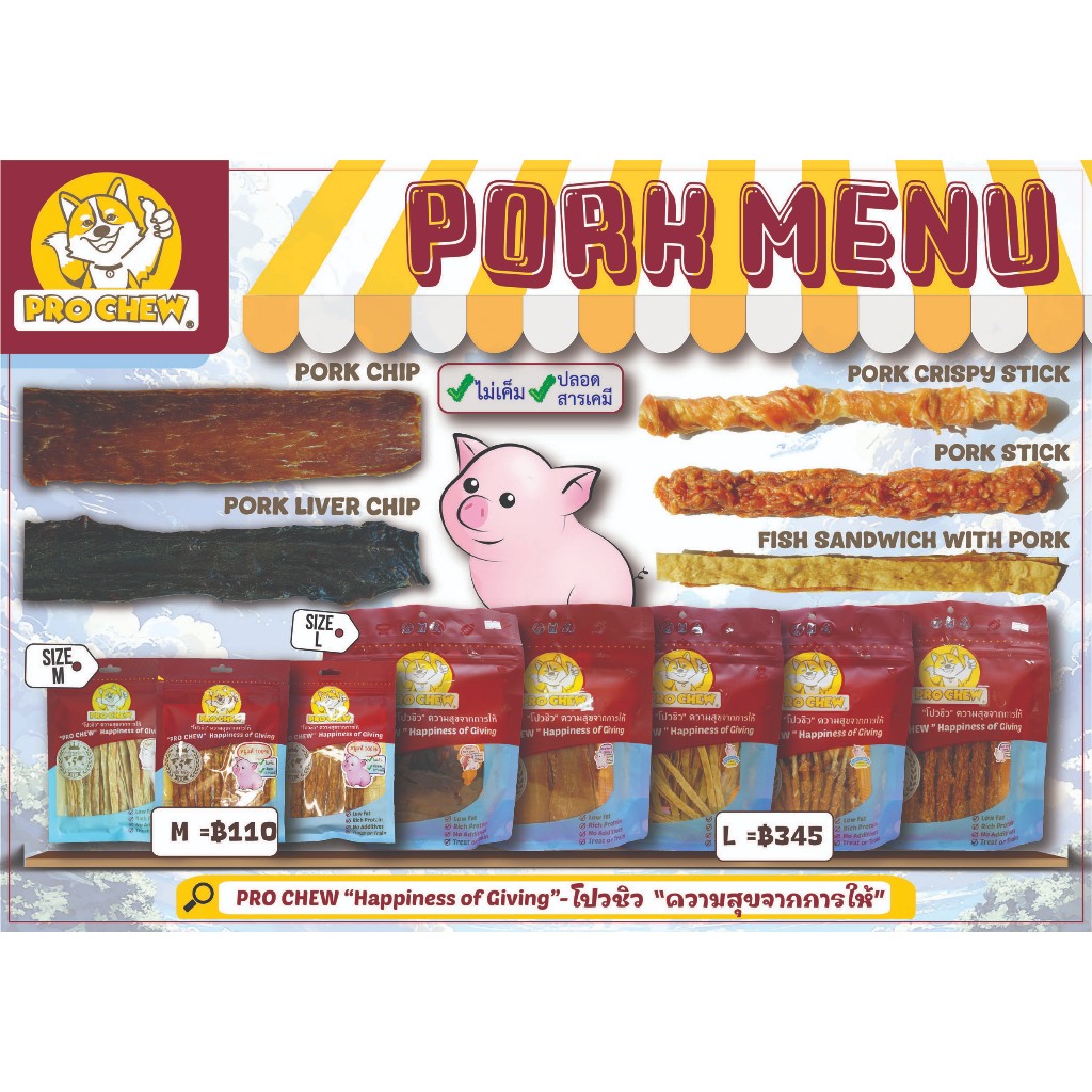 PRO CHEW Crispy Pork Stick 50-170 g.โปวชิว หมูแท่งกรอบ (ป๊อกกี้หมู) 50-170 กรัม {แพ้ไก่กินได้}