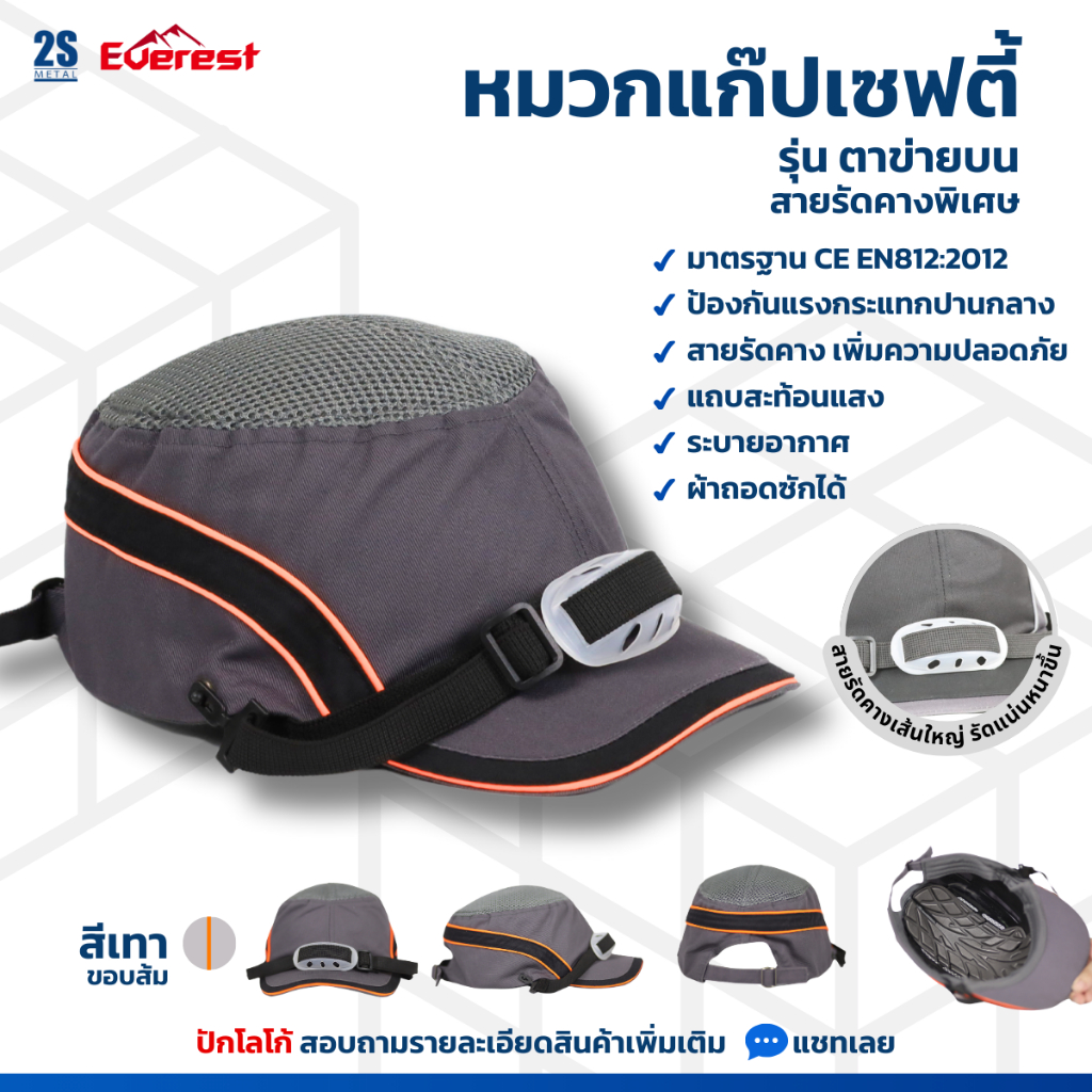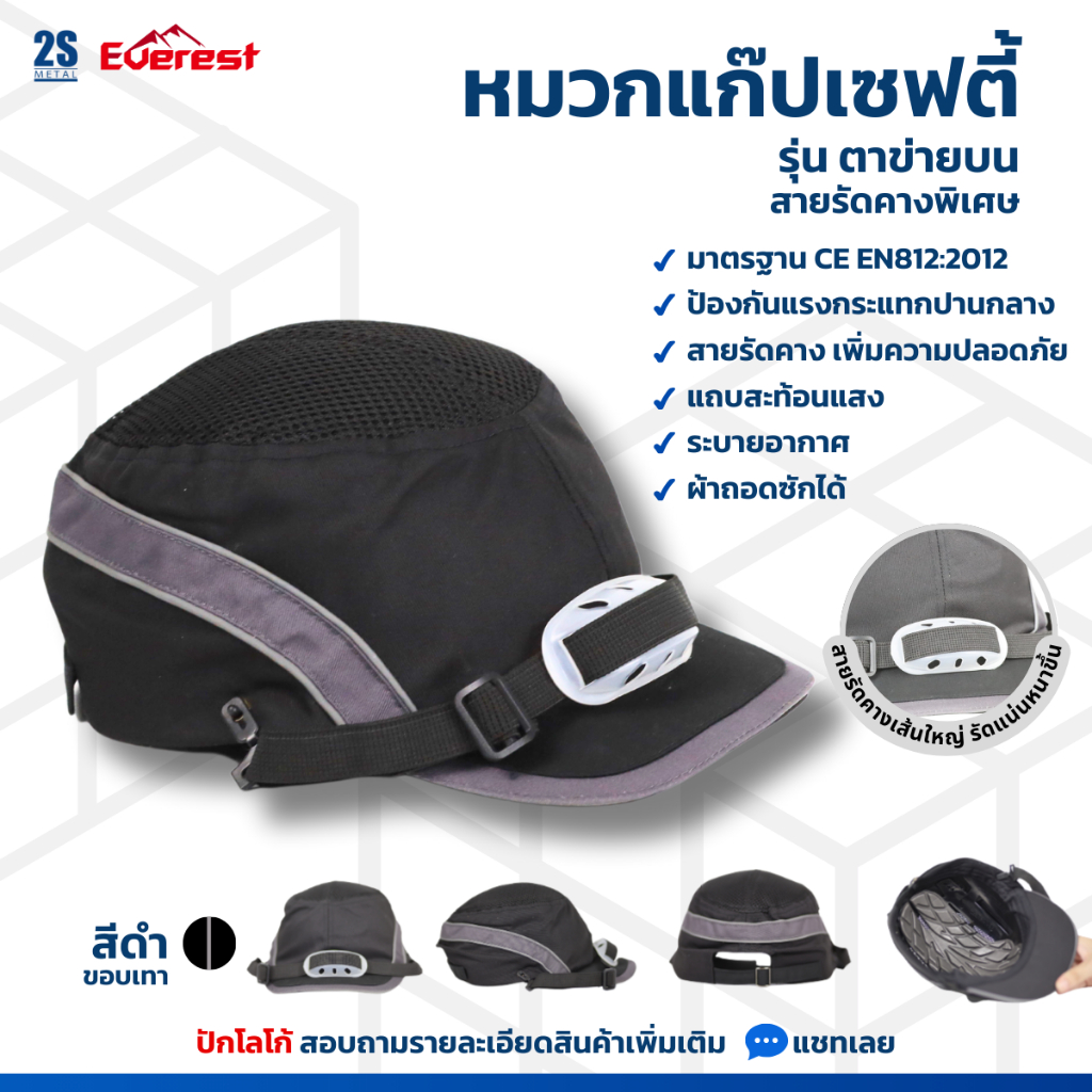 หมวกแก๊ปเซฟตี้ หมวกเซฟตี้ หมวกเซฟตี้เท่ๆ หมวกเซฟตี้วิศวกร รุ่นตาข่ายด้านบน สายรัดคางใหญ่พิเศษ แถบสะท้อนแสงรอบใบ