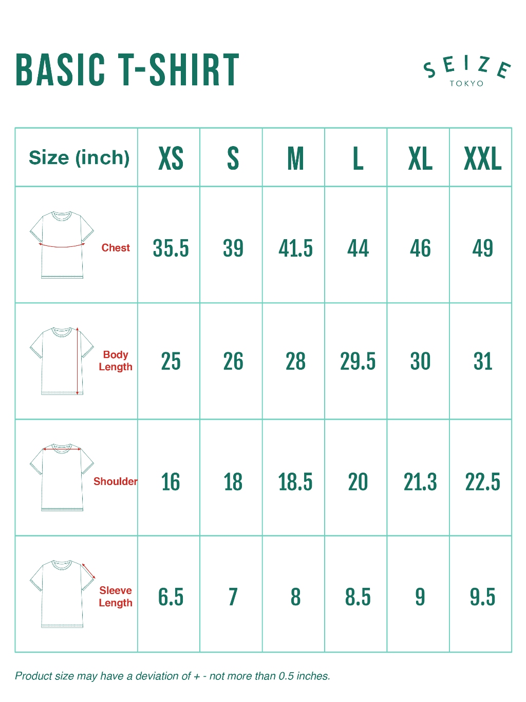 SEIZE TOKYO เสื้อยืดสตรีทญี่ปุ่น แขนสั้น ผ้าคอตตอน100% ระบายอากาศดี นุ่ม ใส่สบายทั้งวัน S_BT_054