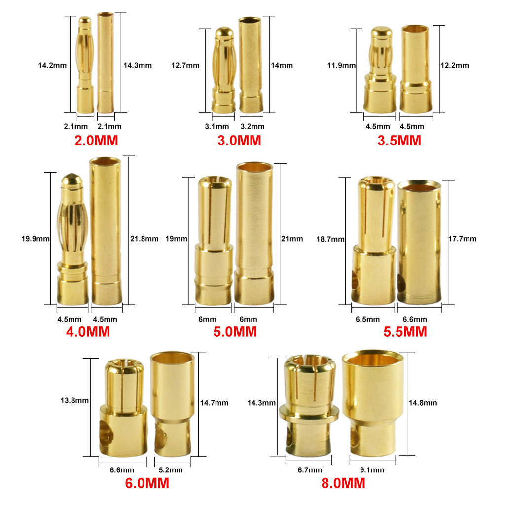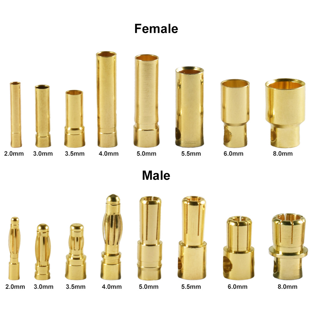 9ฉัน 1/5/10คู่ อาร์ซี ขั้วต่อกระสุน2/3/3.5/4.0/5/5.5/6/8มิลลิเมตรชายหญิงกล้วยกระสุนเชื่อมต่อเสียบอะแดปเตอร์เคลือบทอง