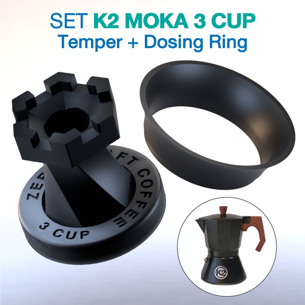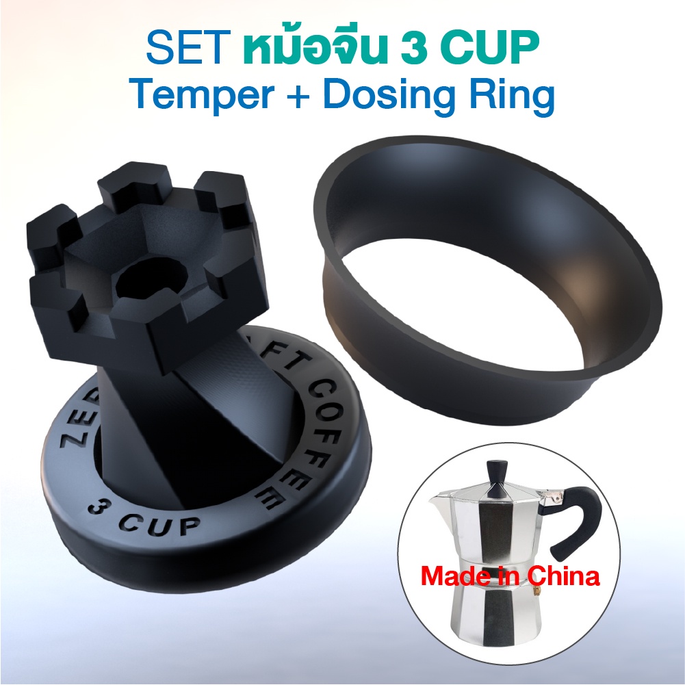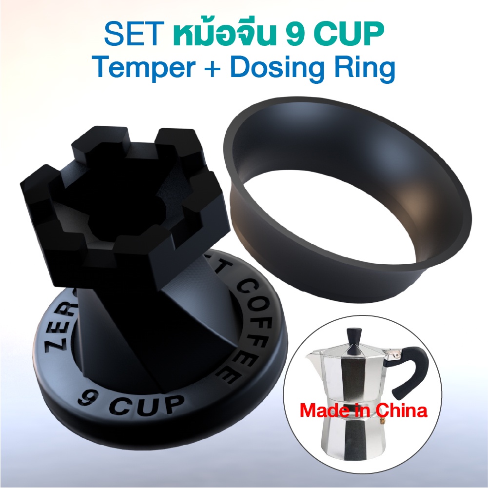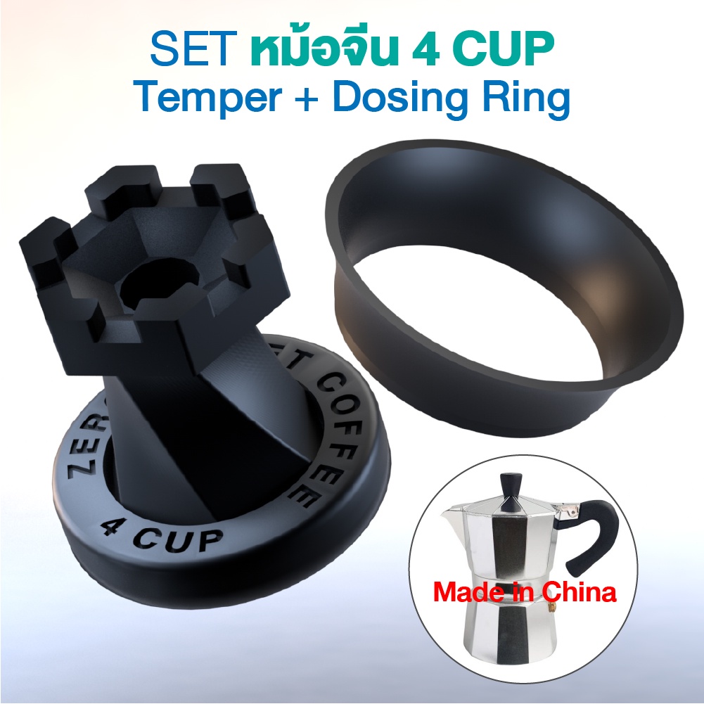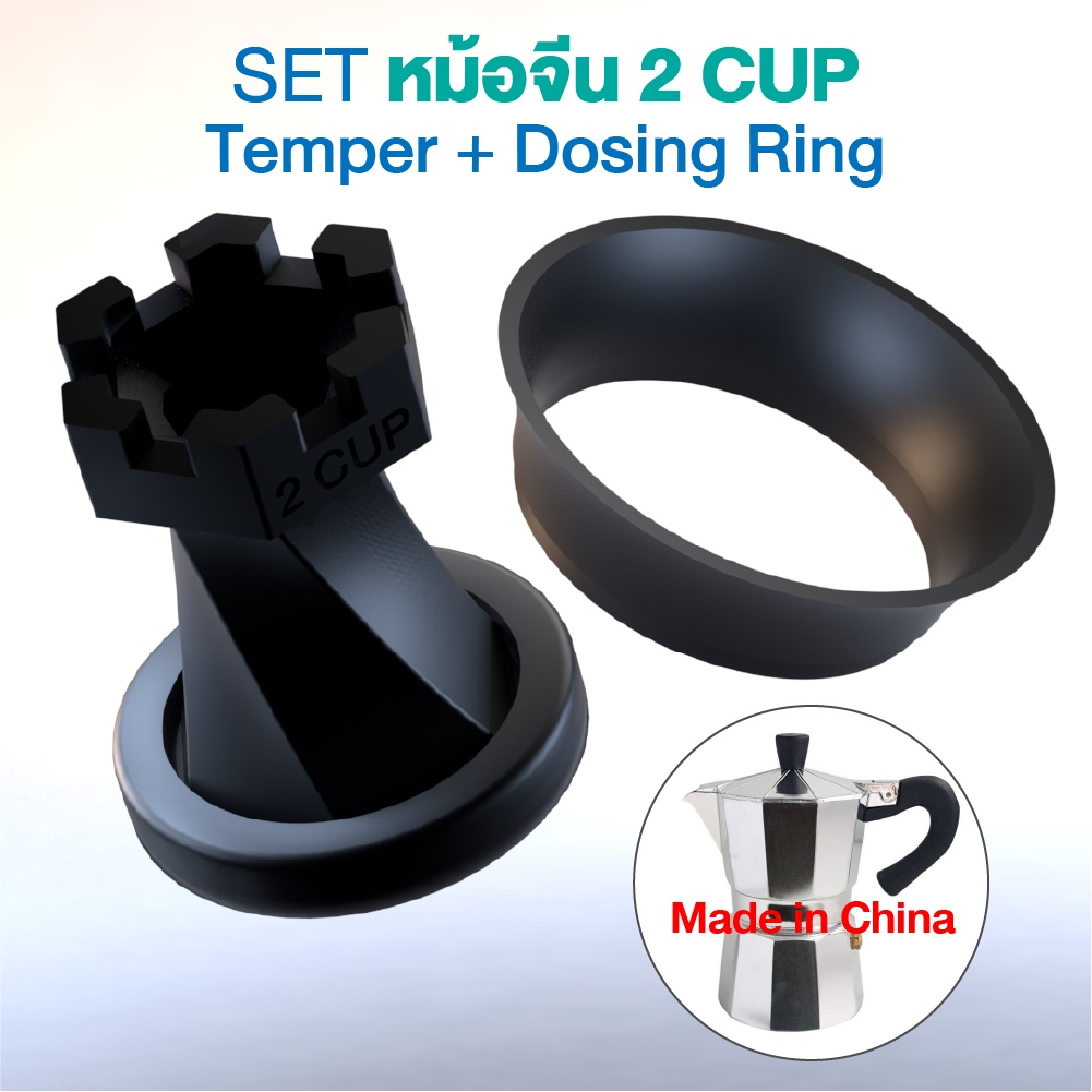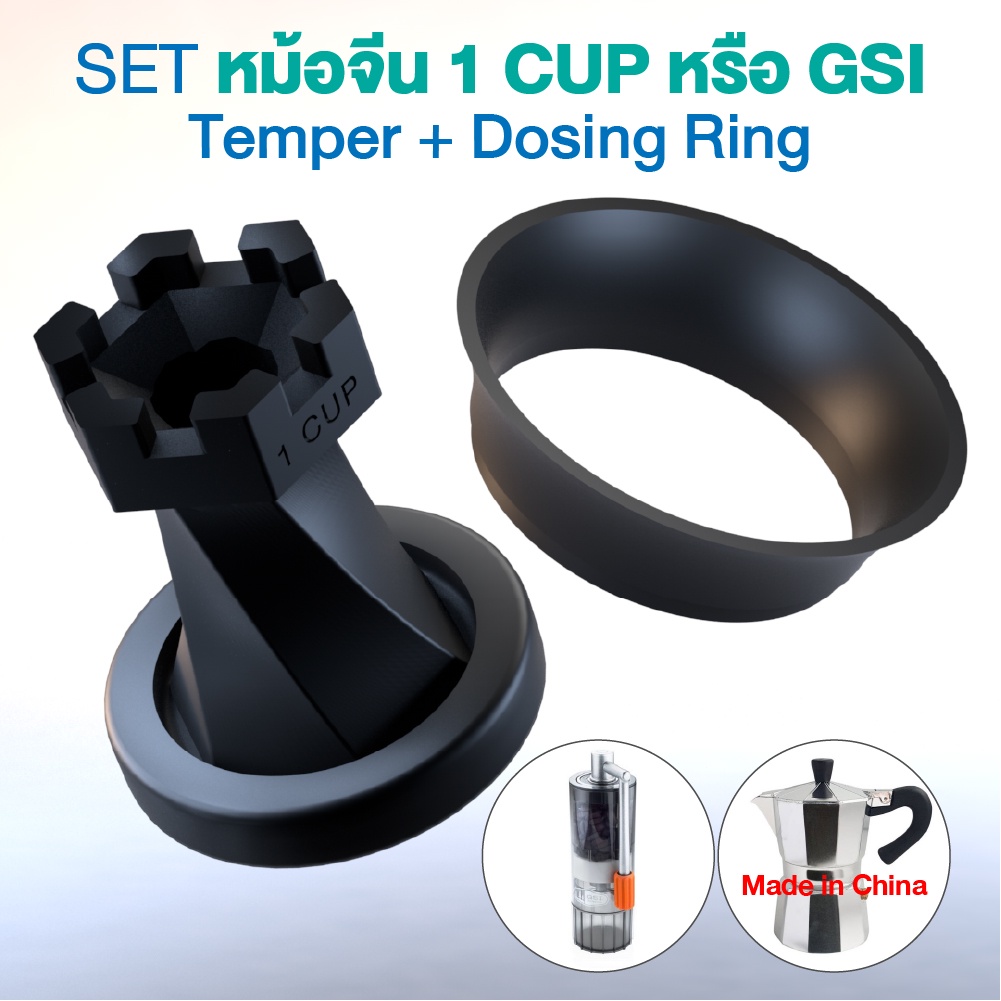 (สีดำ) ตัวกดกาแฟ กับ กรวยกรอกกาแฟ Temper with Dosing Mokapot