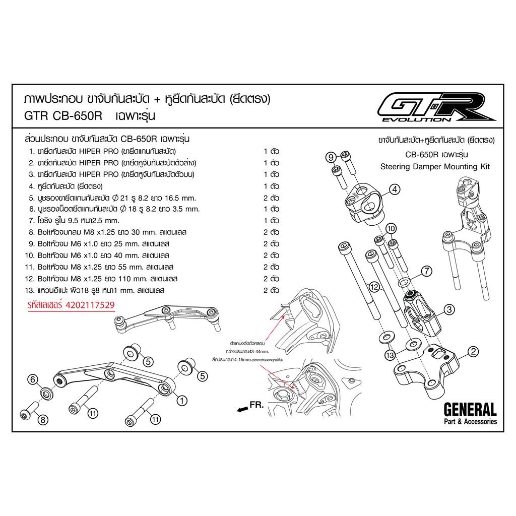 ขาจับกันสะบัด+หุยึดกันสะบัด (ยึดตรง) GTR CB-650R เฉพาะรุ่น