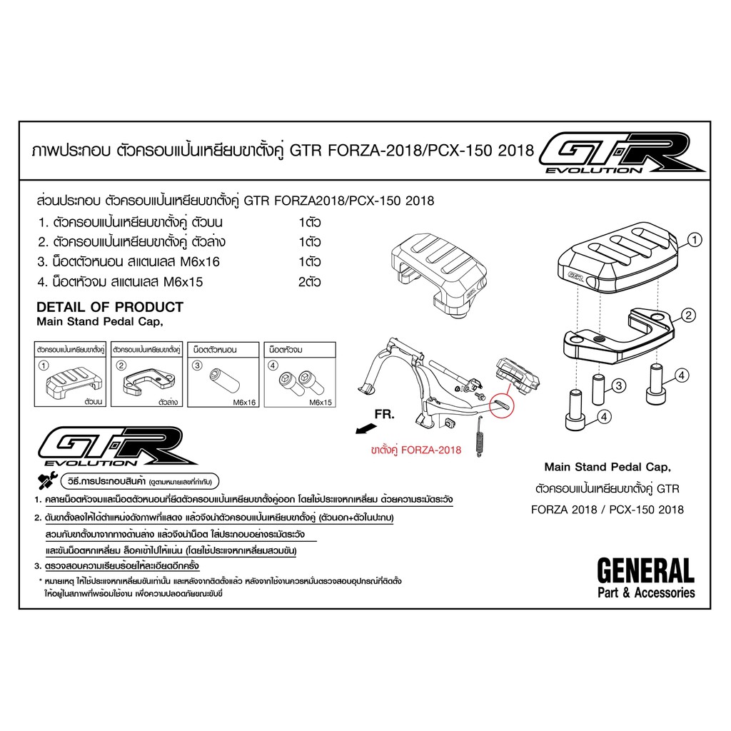 ตัวครอบแป้นเหยียบขาตั้งคู่ GTR GIORNO+/ADV150/FORZA300'18/PCX150 NEW'18 / FORZA350