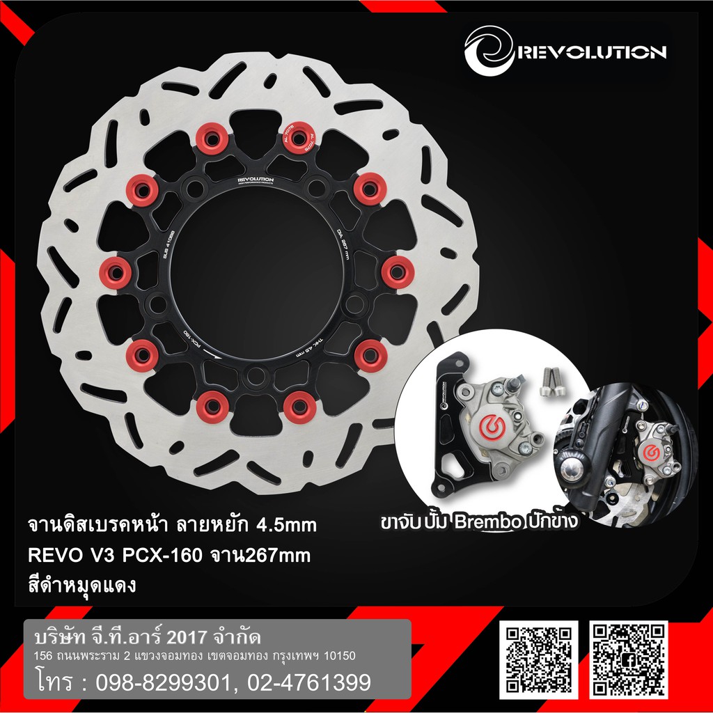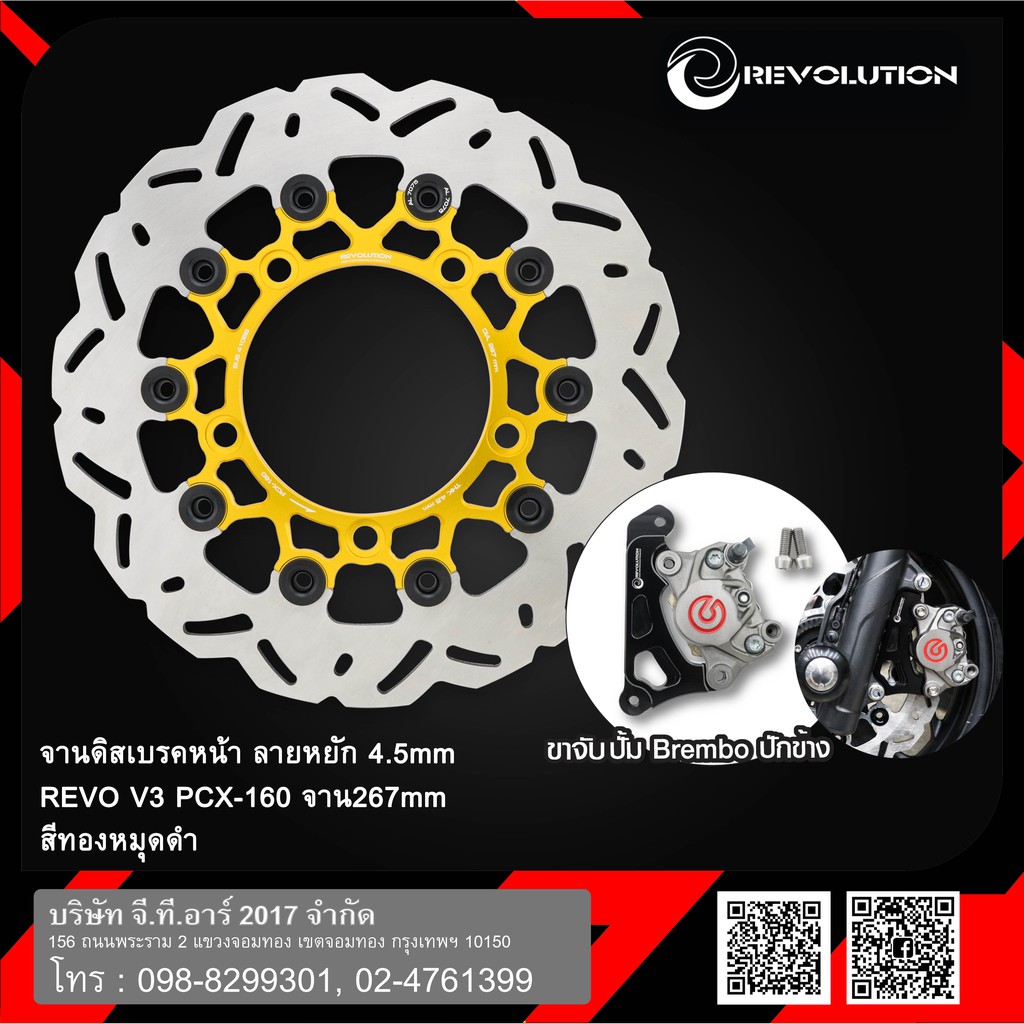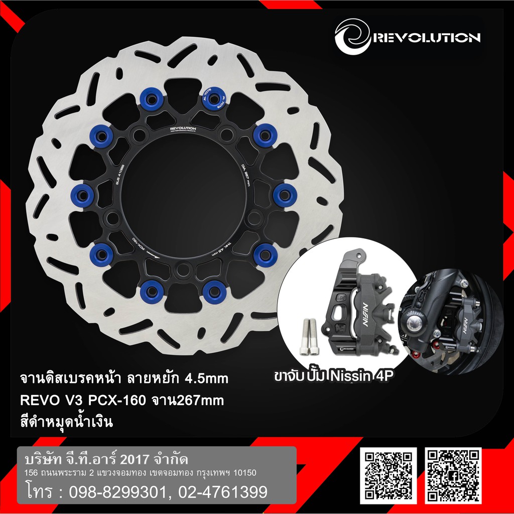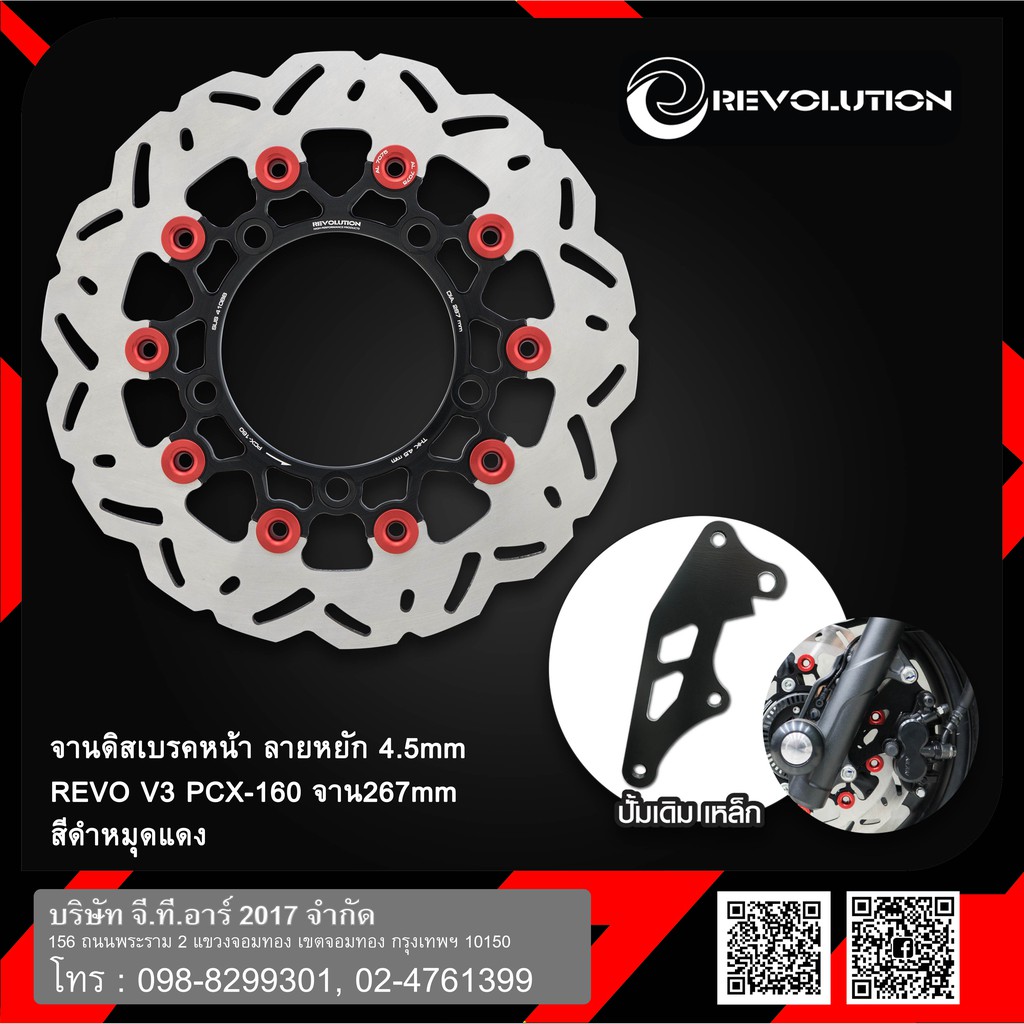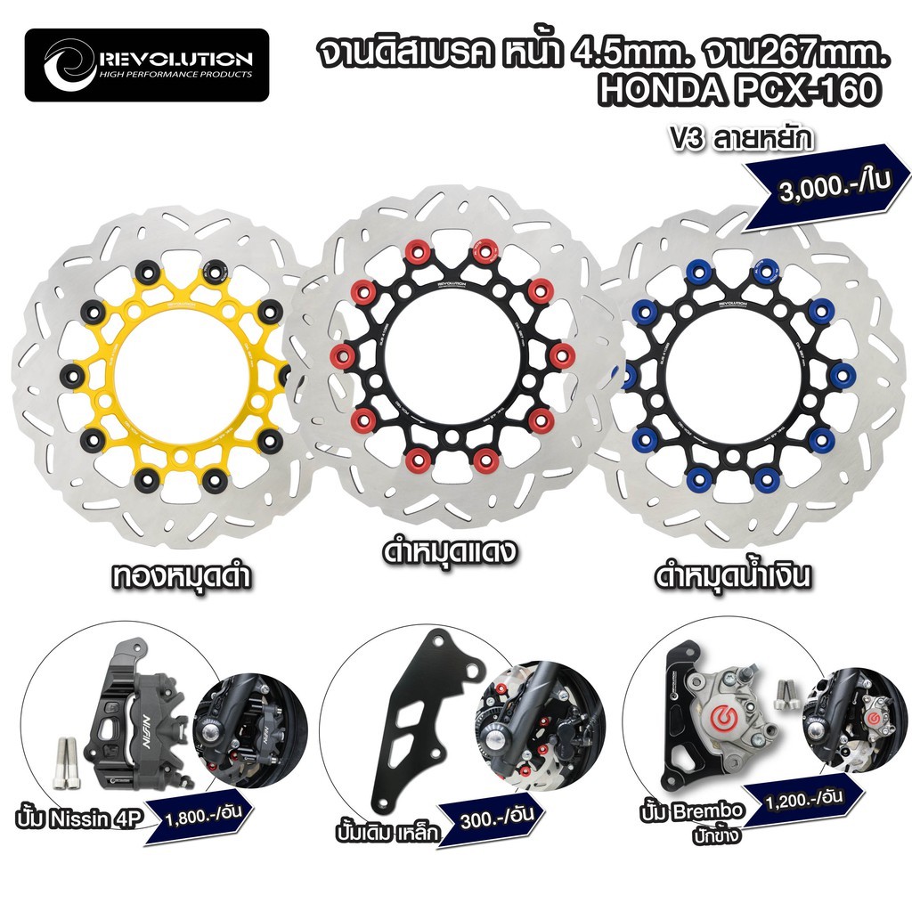 จานดิสเบรคหน้า+ขาจับ ลายหยัก 4.5mm REVO V3 PCX-160 จาน267mm หมุดอลูมิเนียมซีรีย์ 7 รับประกัน 4 เดือน