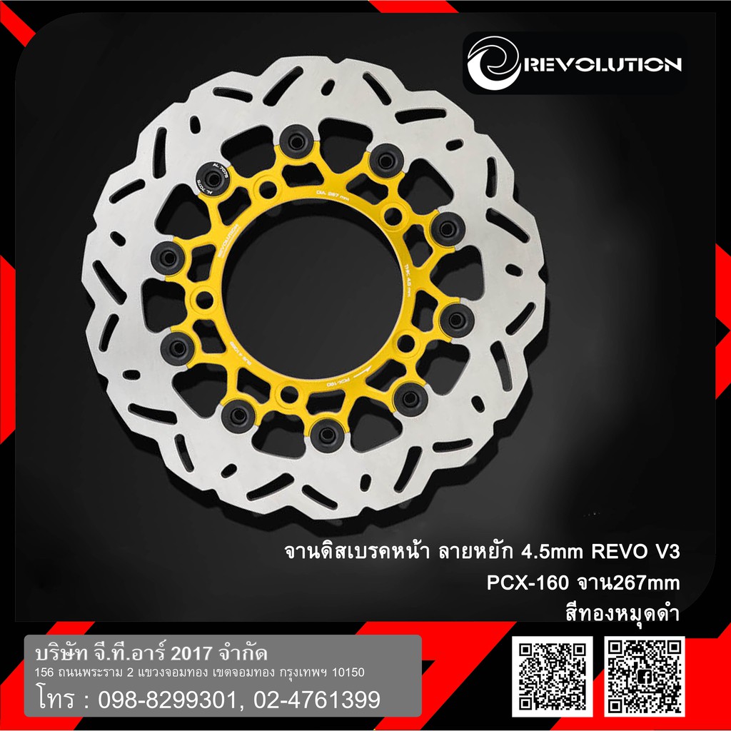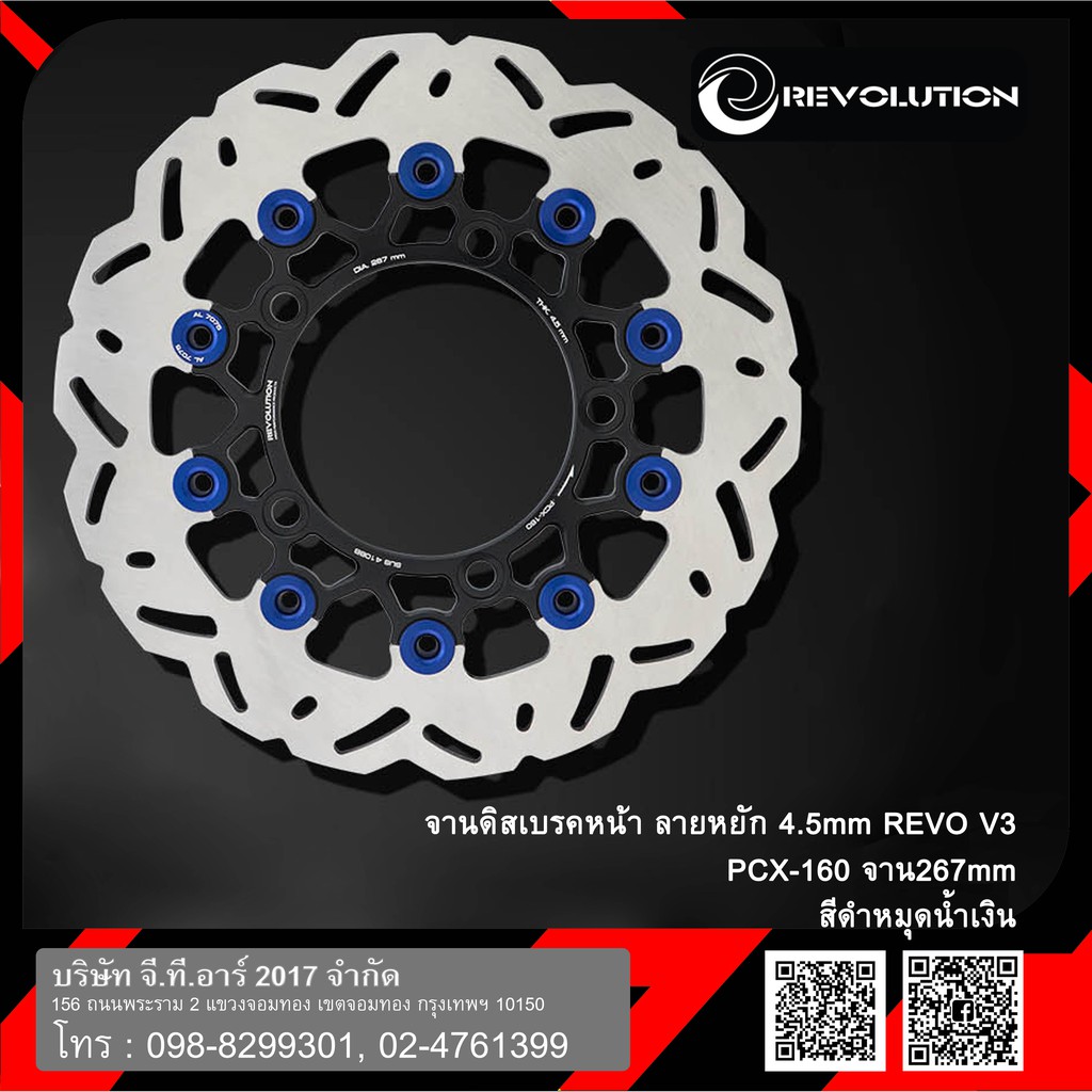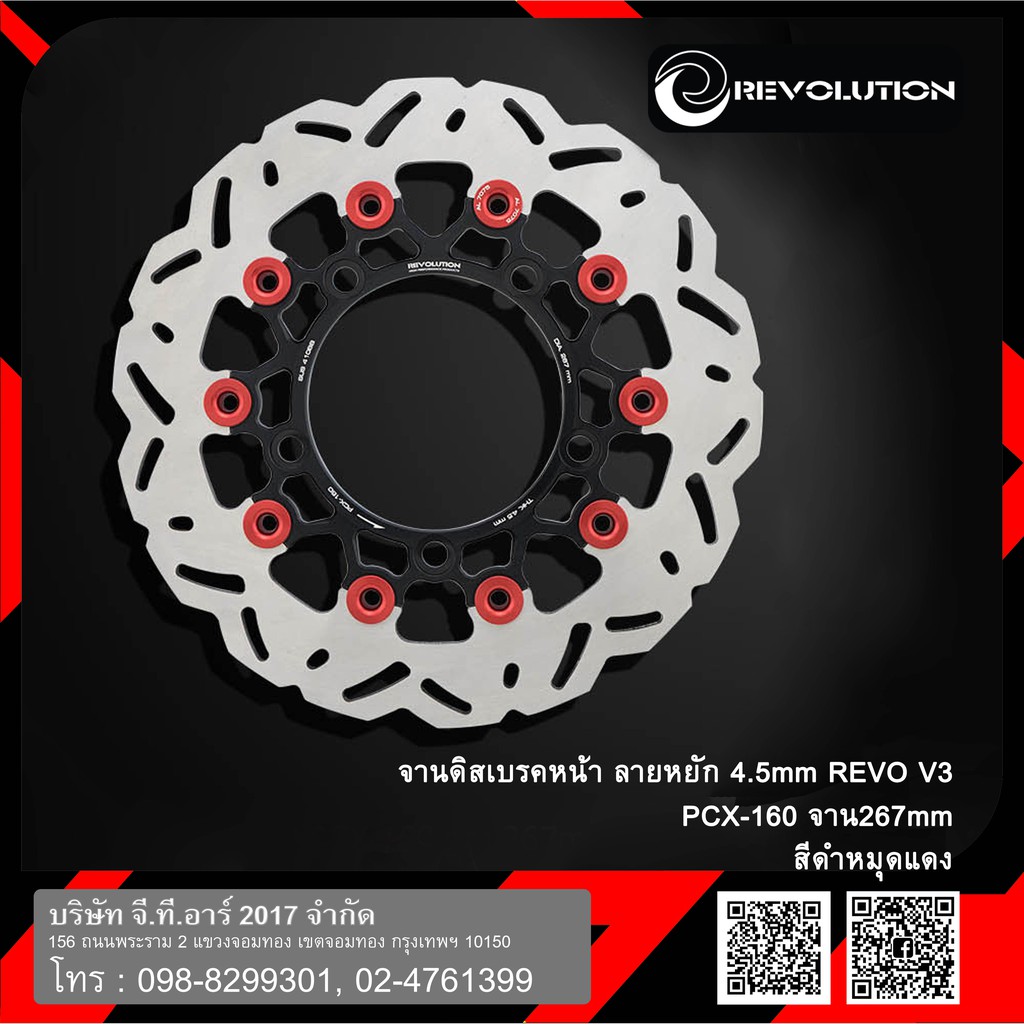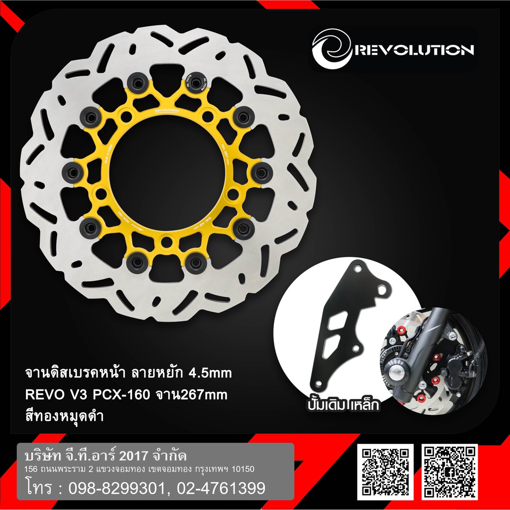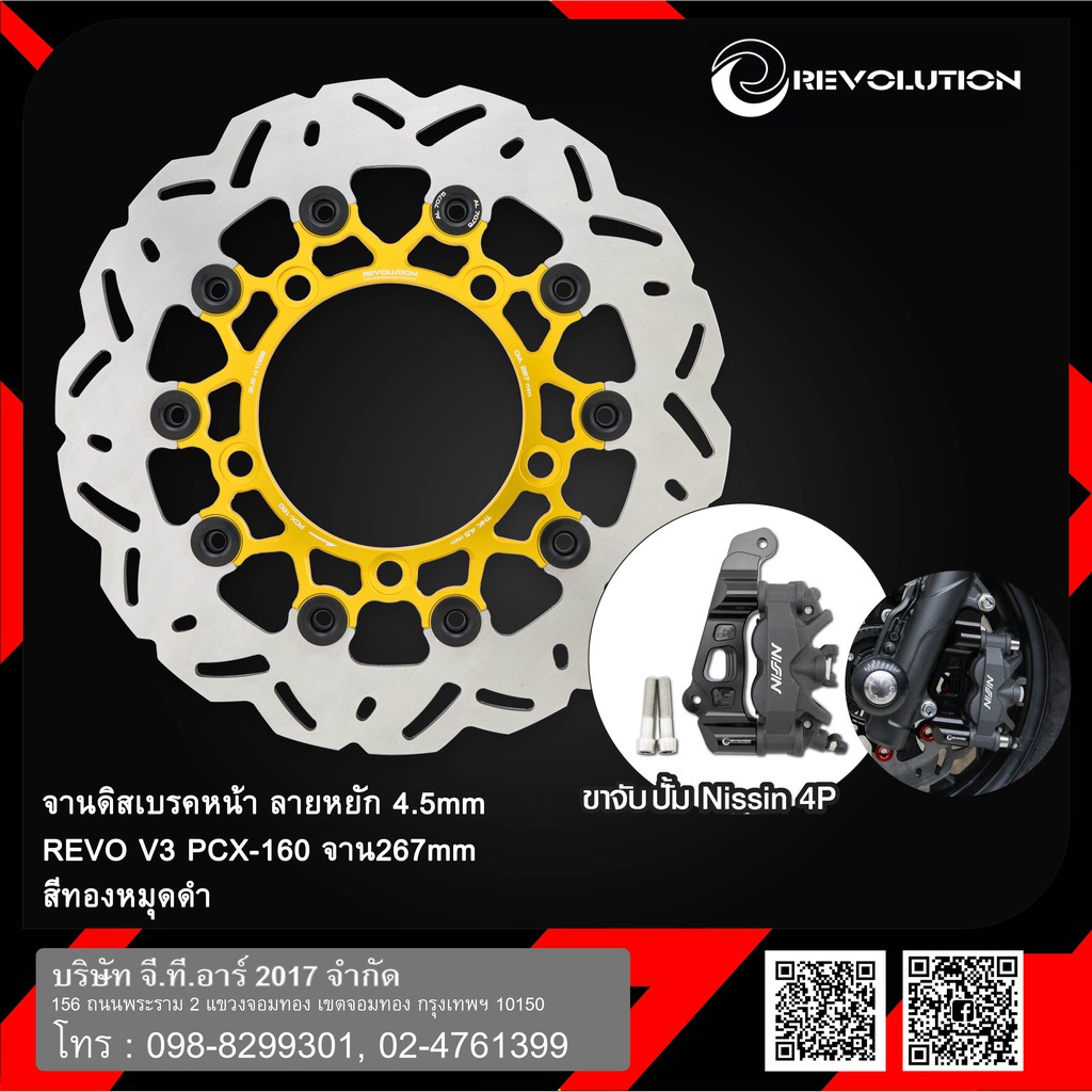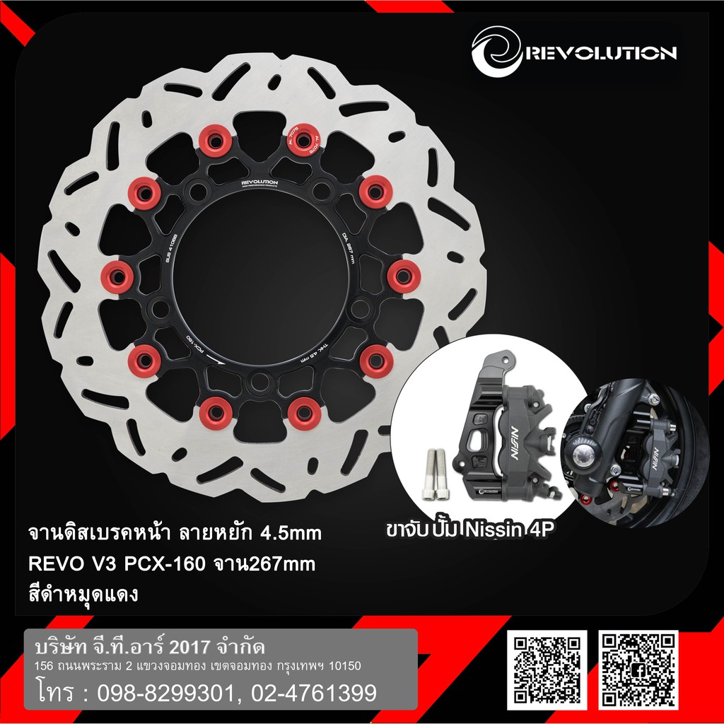 จานดิสเบรคหน้า+ขาจับ ลายหยัก 4.5mm REVO V3 PCX-160 จาน267mm หมุดอลูมิเนียมซีรีย์ 7 รับประกัน 4 เดือน