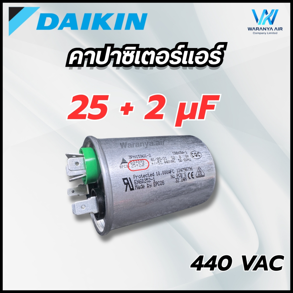 Daikin คาปาซิเตอร์แอร์ 440 VAC แคปรัน 3 ขั้ว คอยล์ร้อน มีหลายขนาดให้เลือก อะไหล่แอร์ จากศูนย์ ไดกิ้น