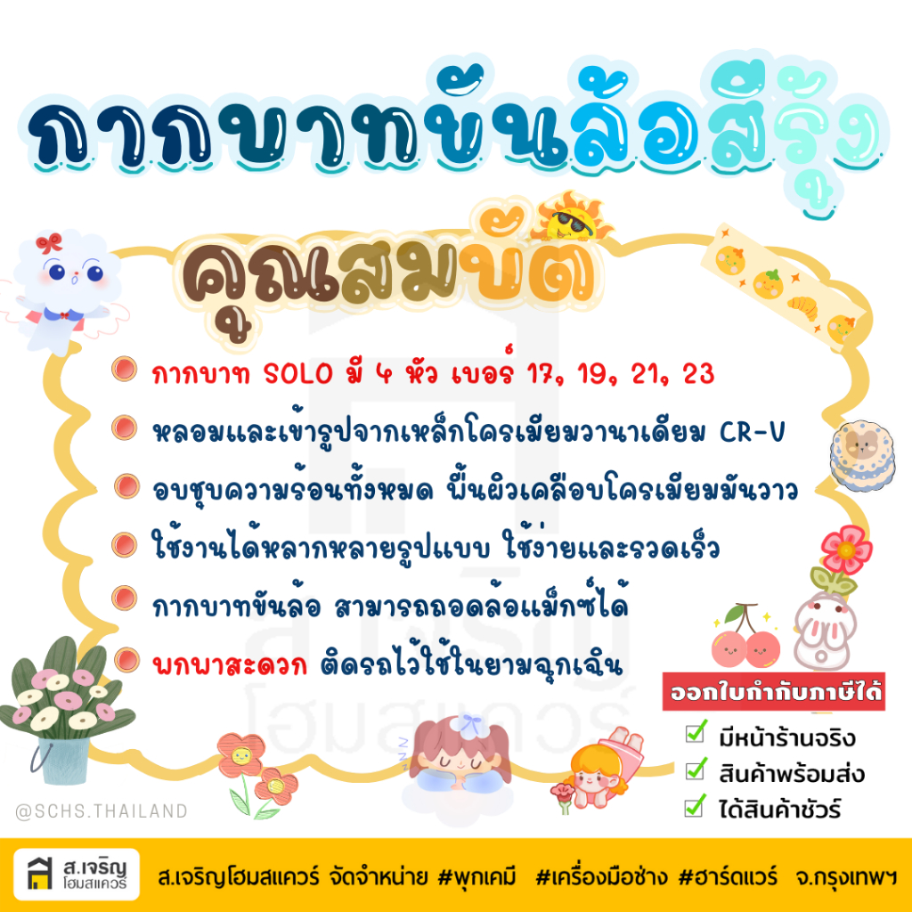 SOLO โซโล กากบาทขันล้อ 14 นิ้ว ขนาด 17,19,21,23 มม. กากบาท ประแจกากบาท ประแจขันล้อ กากบาทถอดล้อ