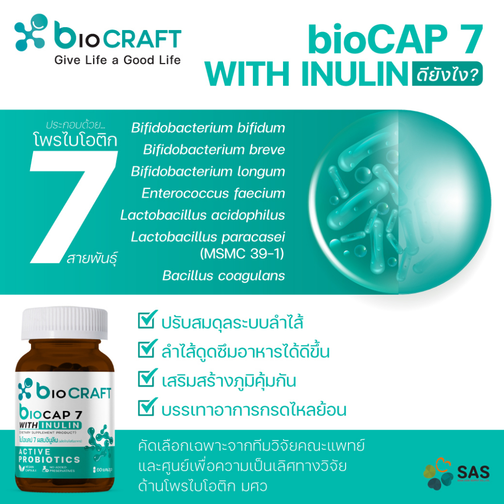 bioCRAFT bioCAP 7 โพรไบโอติกสายพันธุ์ไทย สำหรับผู้ที่มีปัญหากรดไหลย้อน ภูมิคุ้มกัน