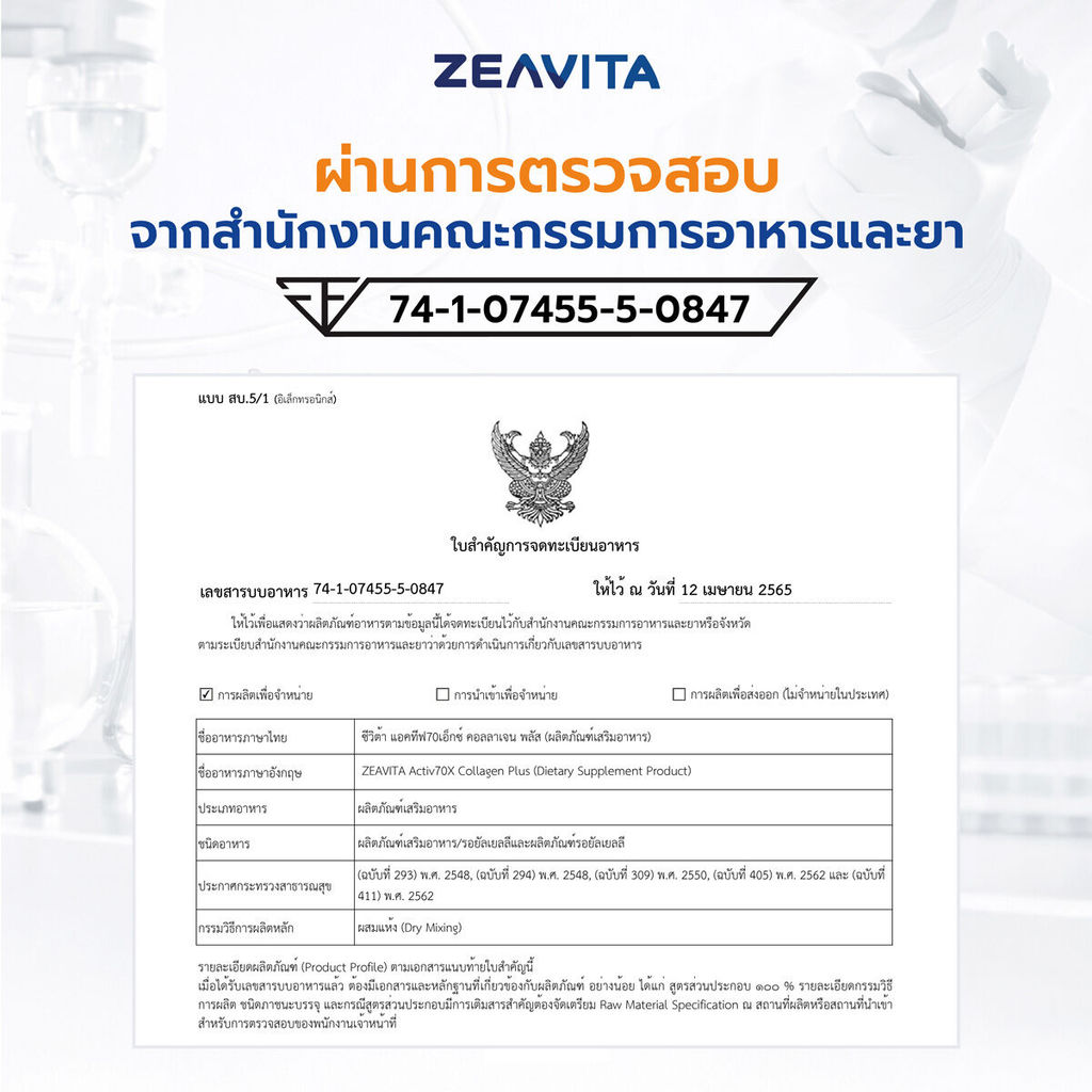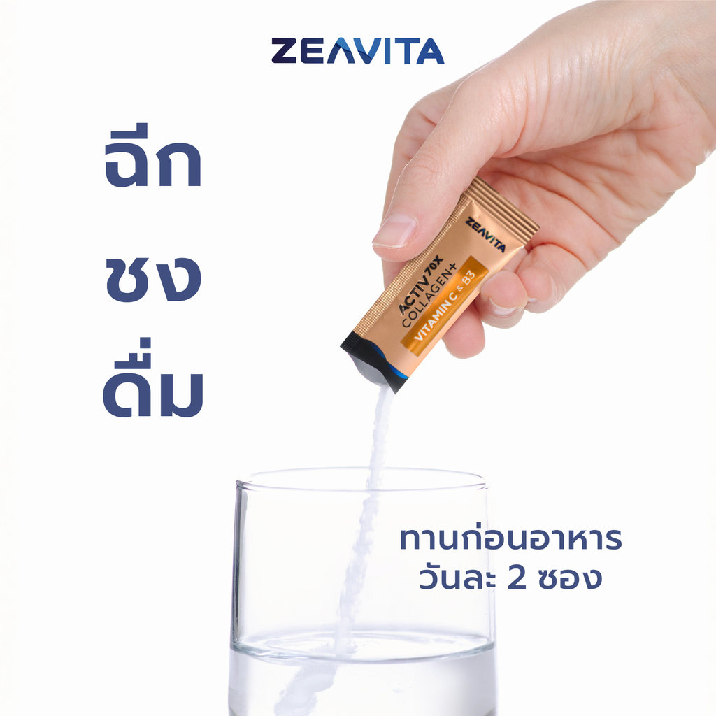 Zeavita ซีวิต้า คอลลาเจน ไดเปปไทด์100% + วิตามินซี & บี3 ผิวและข้อ (30ซองx1กล่อง) collagen dipeptide อาหารเสริม