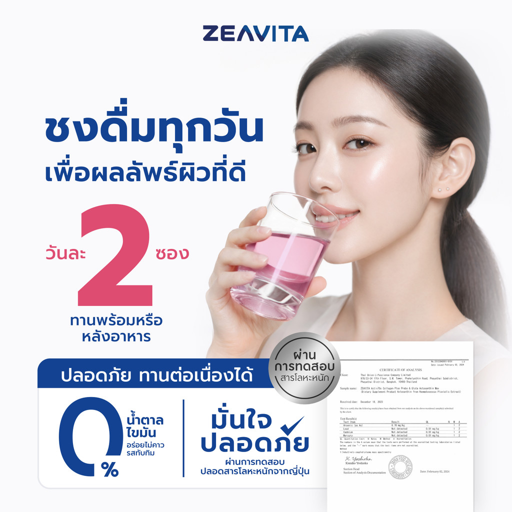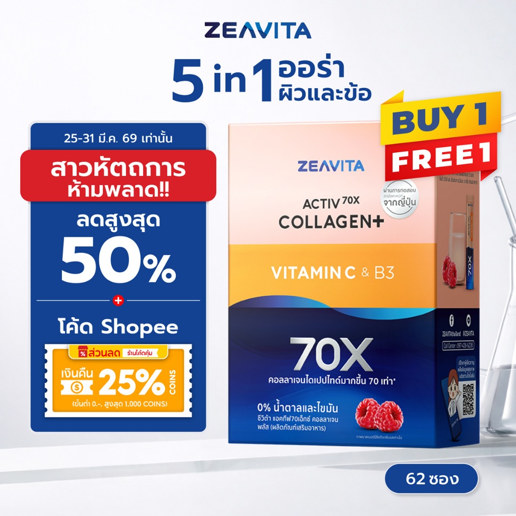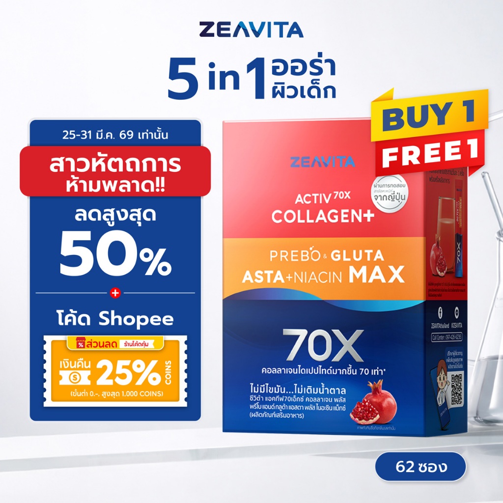 [1แถม1] Zeavita ซีวิต้า คอลลาเจน กลูต้า&ซิงค์ + พรีไบโอติกส์ (62ซองx1กล่อง) collagen วิตามินซี gluta zinc