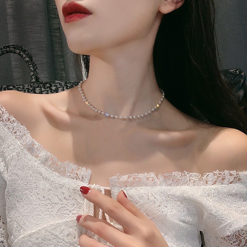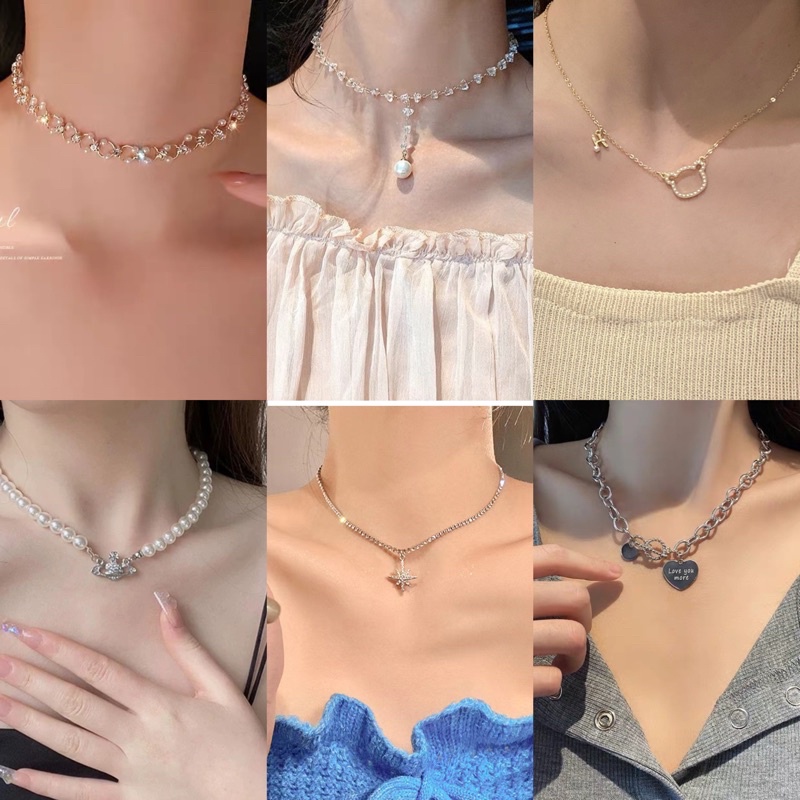 newพร้อมส่งสร้อยคอแฟชั่นมุกโลหะ