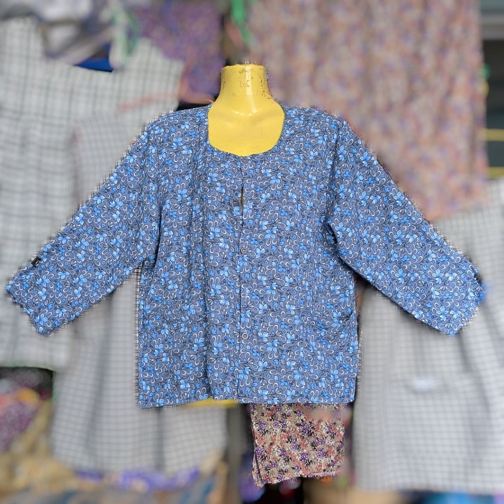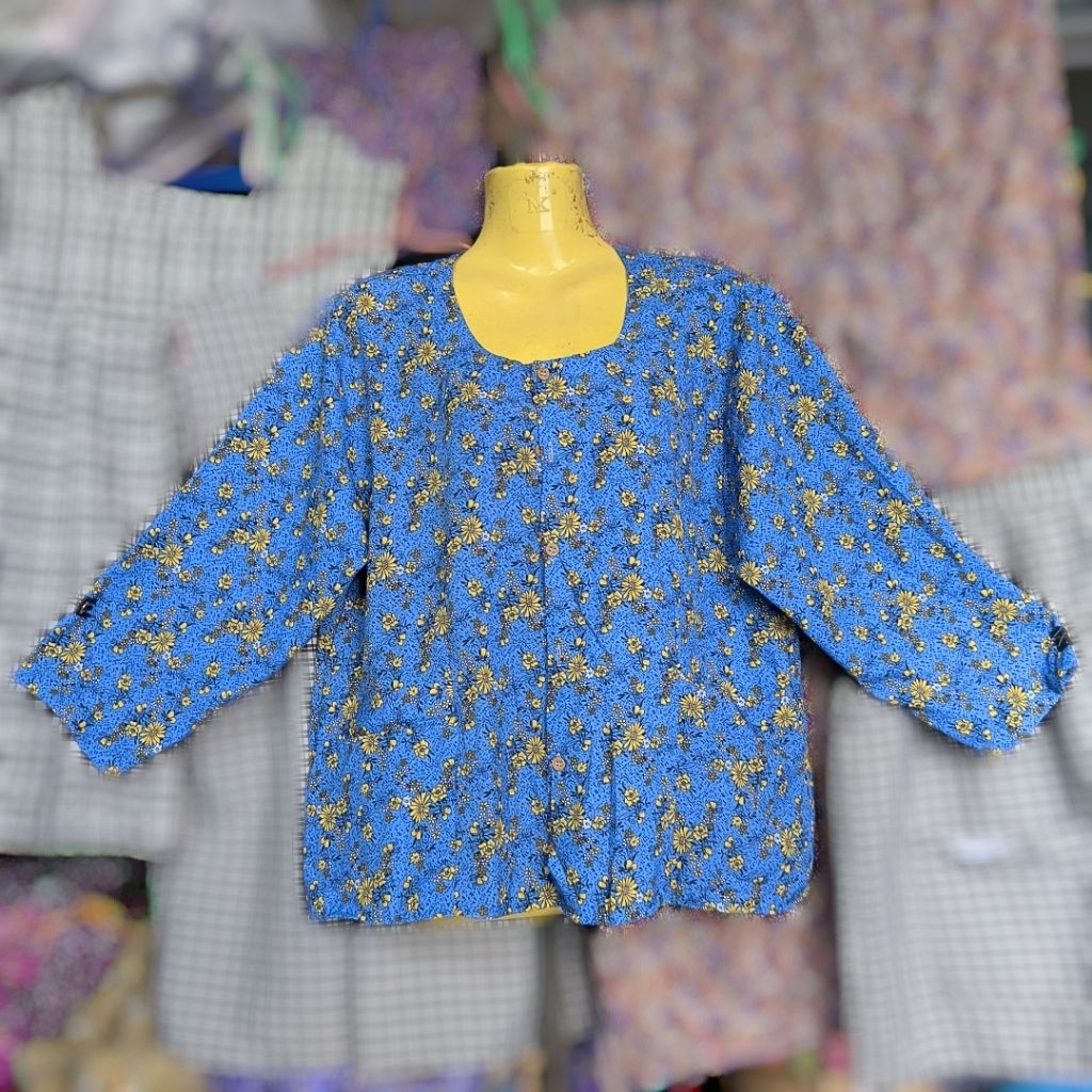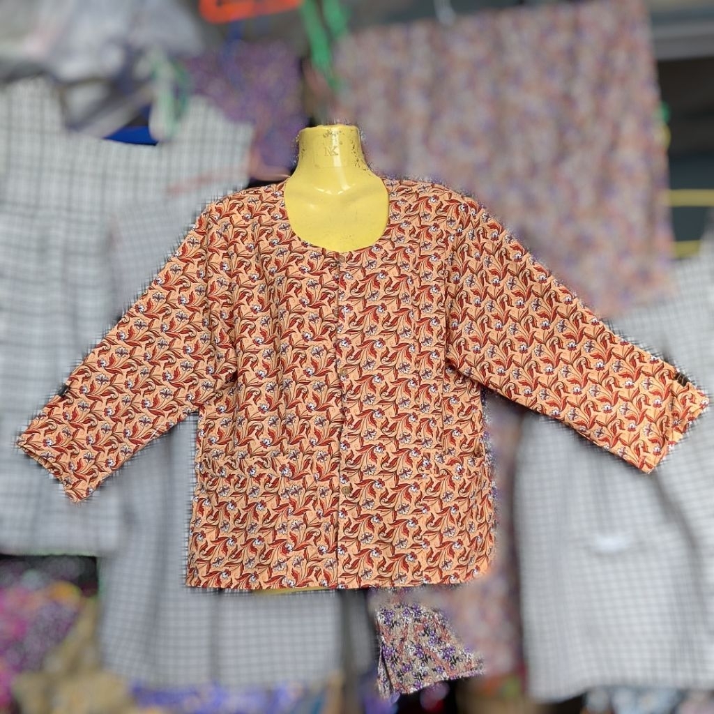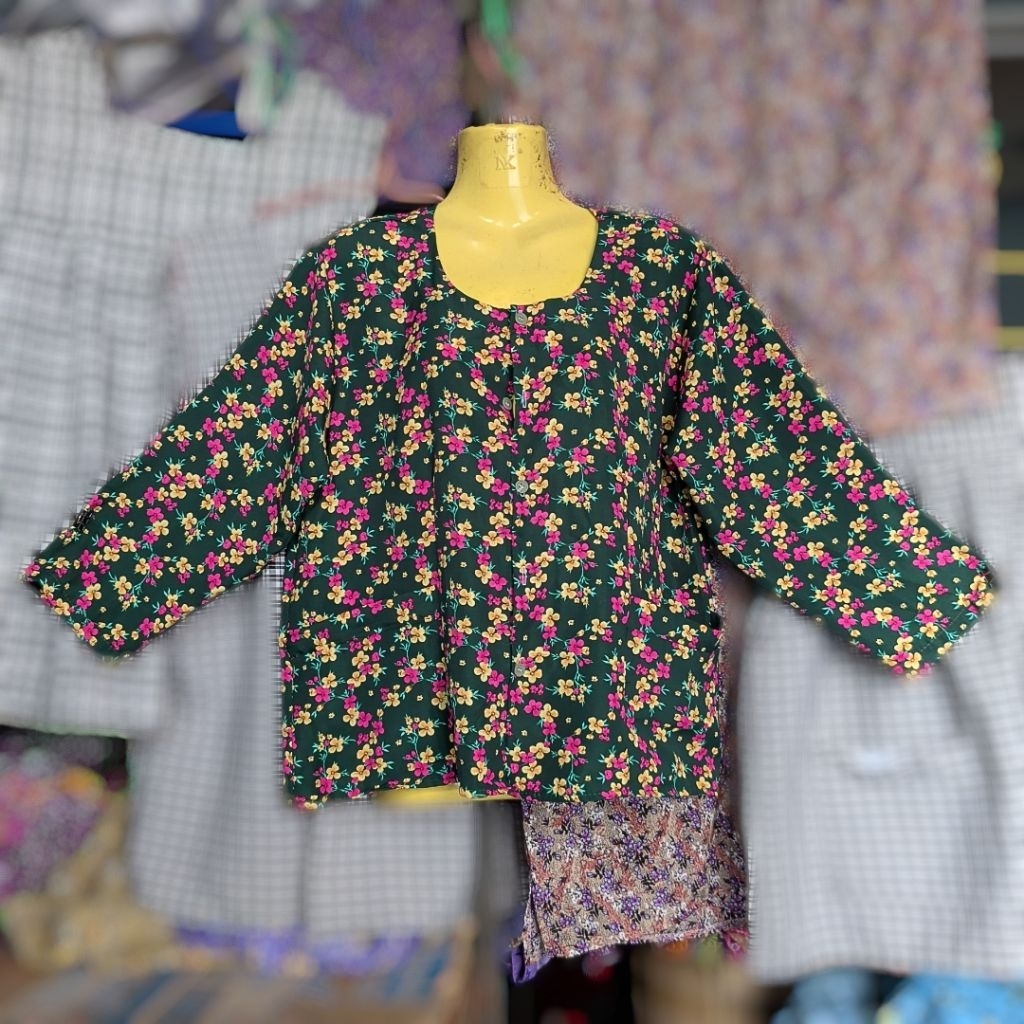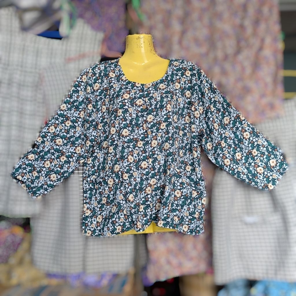 #D3(Size L)เสื้อคอกระเช้า ลายดอก เสื้อคนแก่ แขนยาว ผ่าหน้ากระดุม ข้างนึงมีซิป อีกข้างเป็นกระเป๋า ขนาด อก= 44" , ยาว=20"