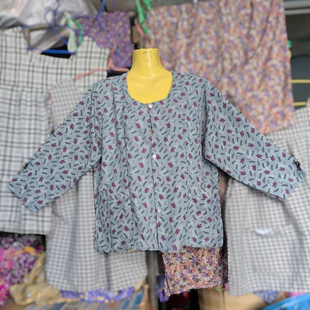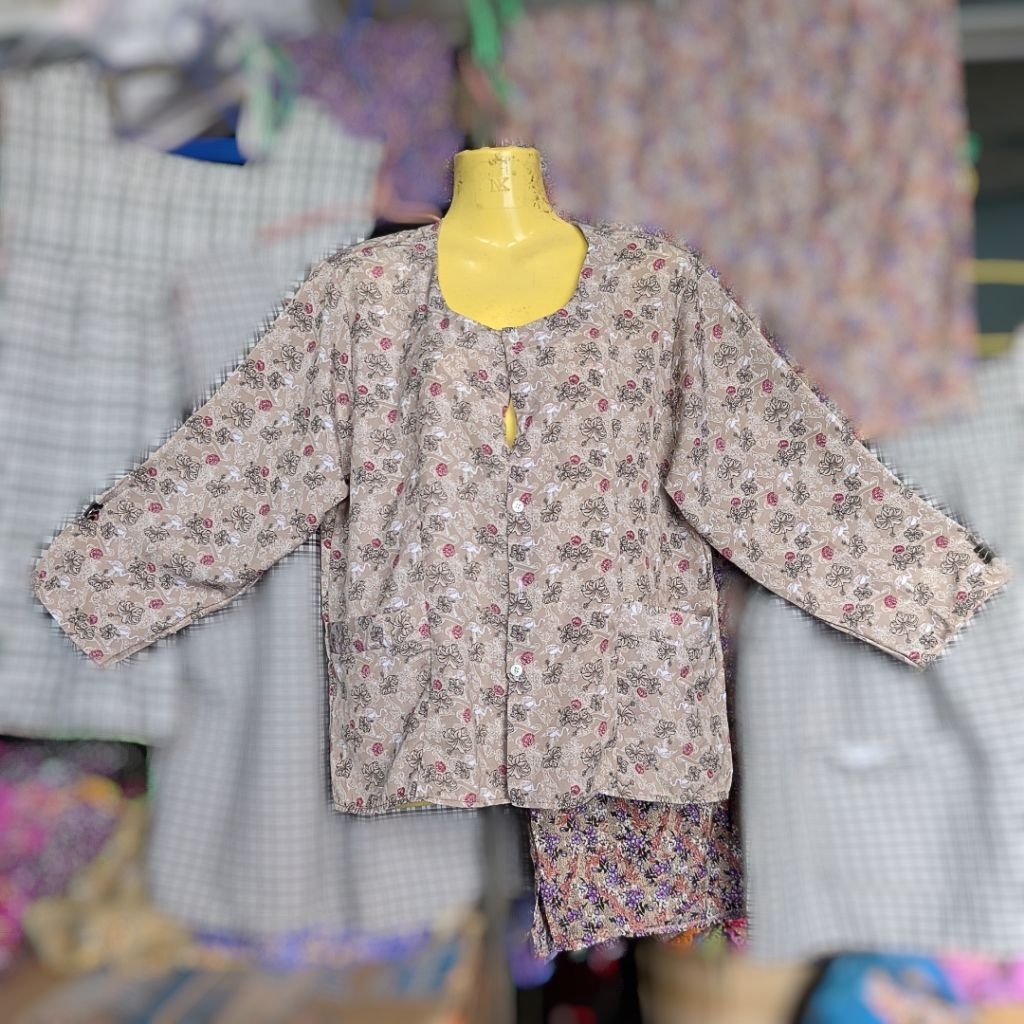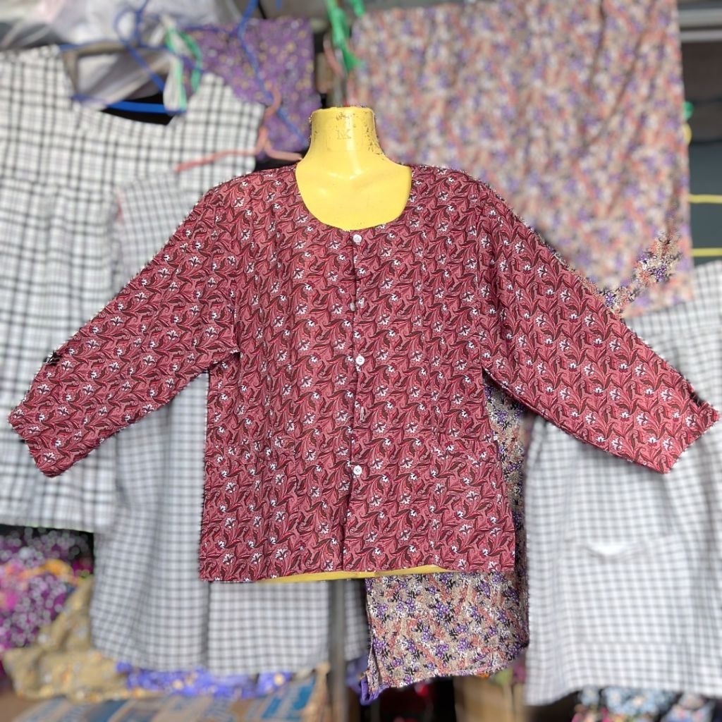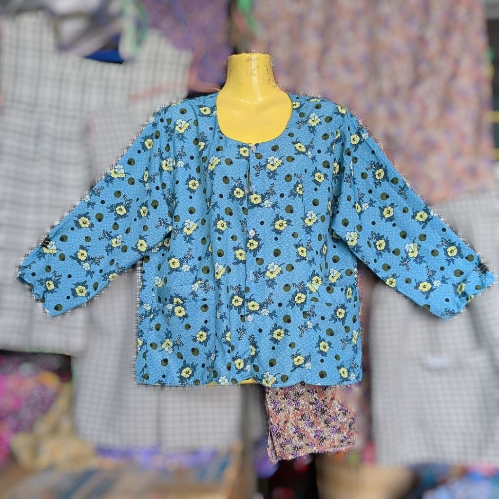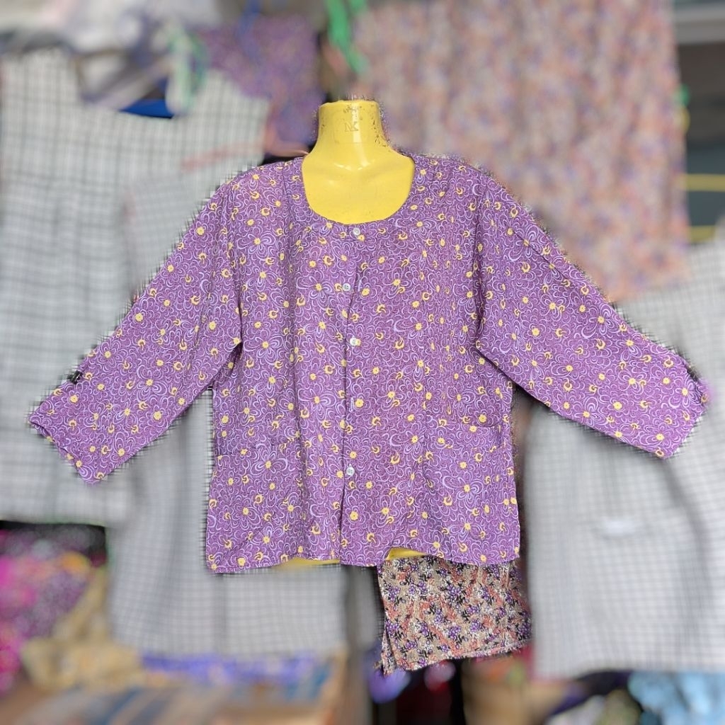 #D3(Size L)เสื้อคอกระเช้า ลายดอก เสื้อคนแก่ แขนยาว ผ่าหน้ากระดุม ข้างนึงมีซิป อีกข้างเป็นกระเป๋า ขนาด อก= 44" , ยาว=20"