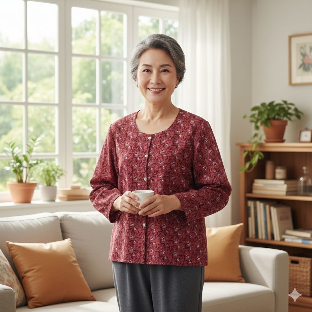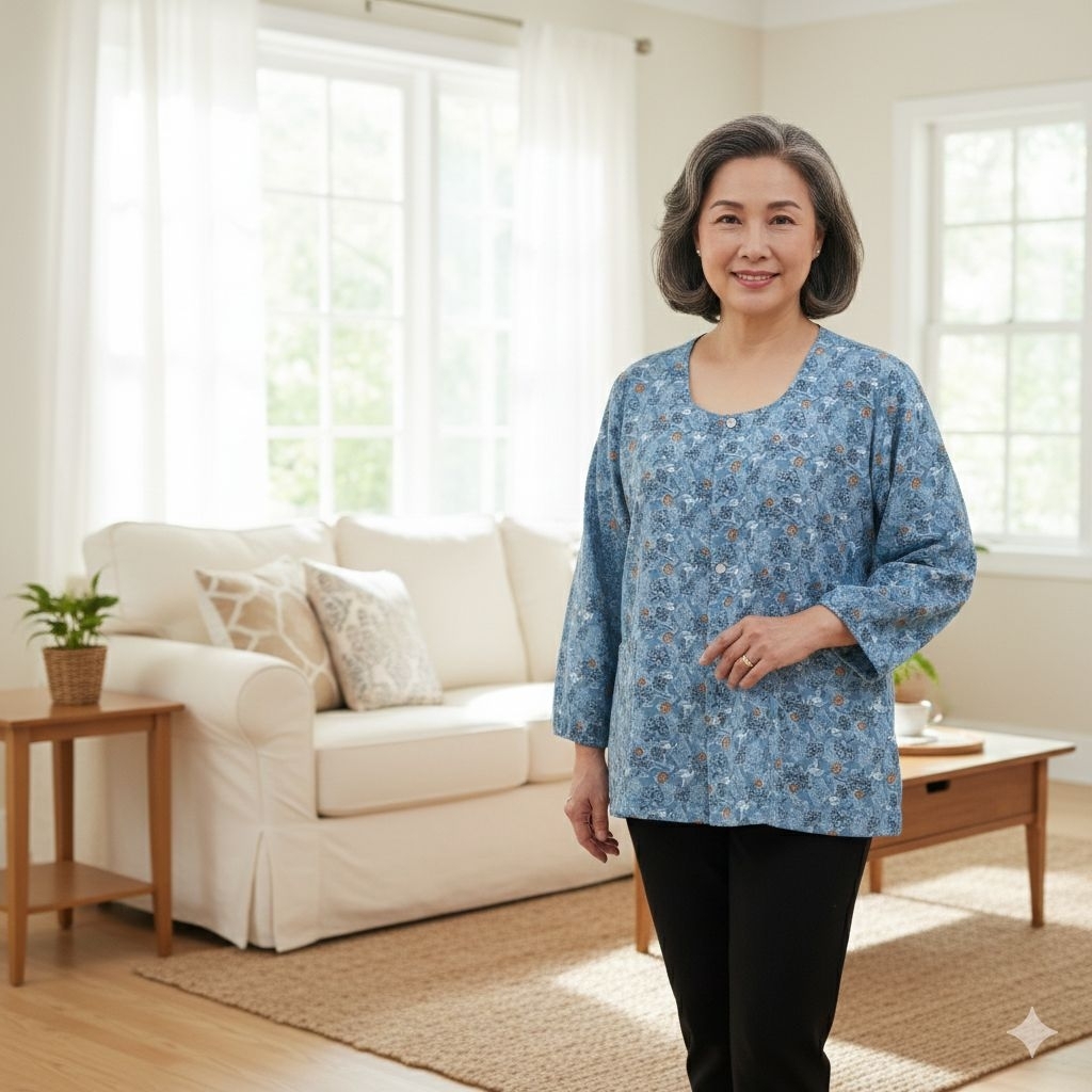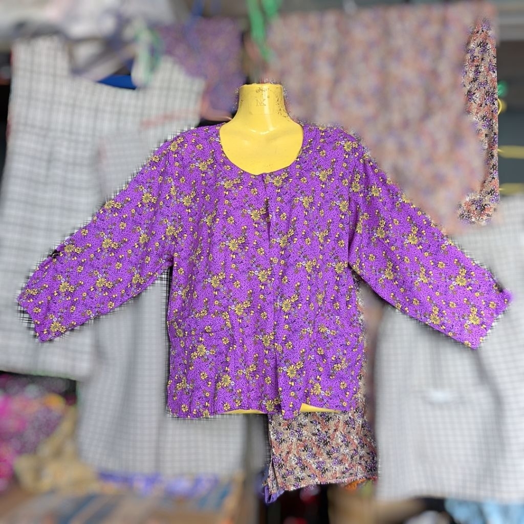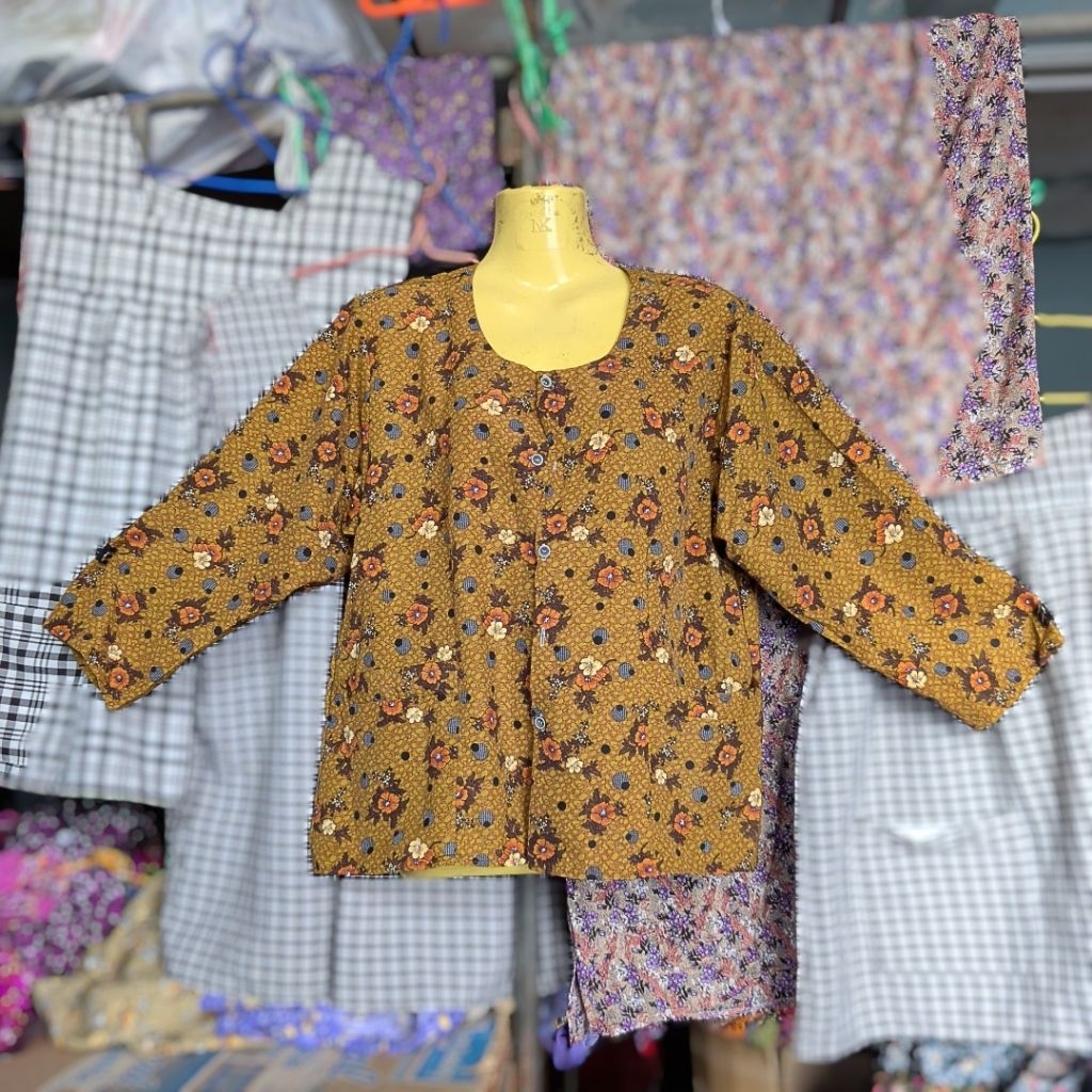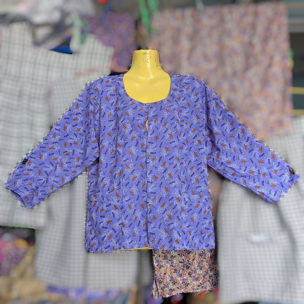 #D3(Size L)เสื้อคอกระเช้า ลายดอก เสื้อคนแก่ แขนยาว ผ่าหน้ากระดุม ข้างนึงมีซิป อีกข้างเป็นกระเป๋า ขนาด อก= 44" , ยาว=20"