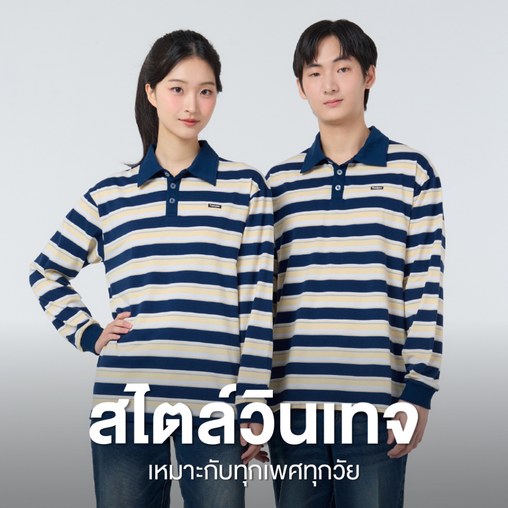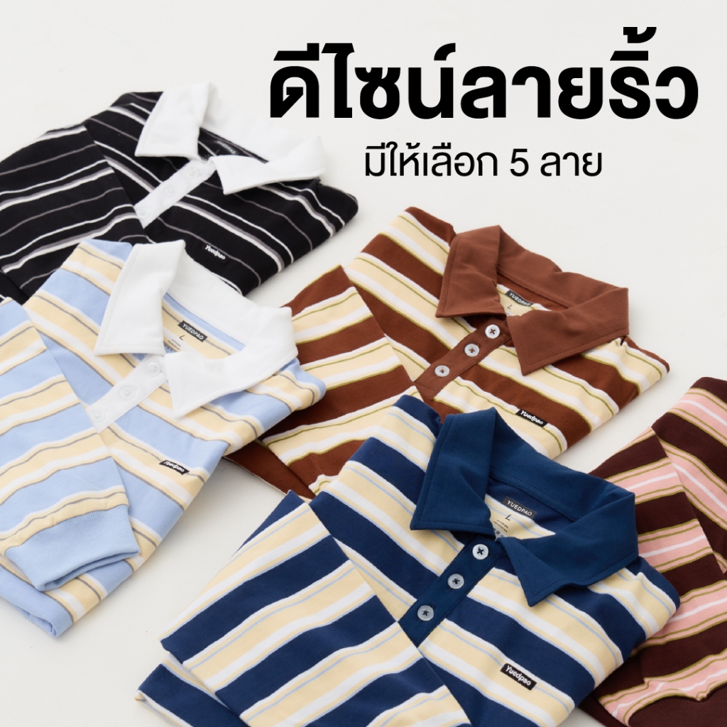 Yuedpao Polo Long Sleeve Striped ผ้าหนาทรงสวย ยับยากรีดง่าย เสื้อแขนยาว โปโลแขนยาว