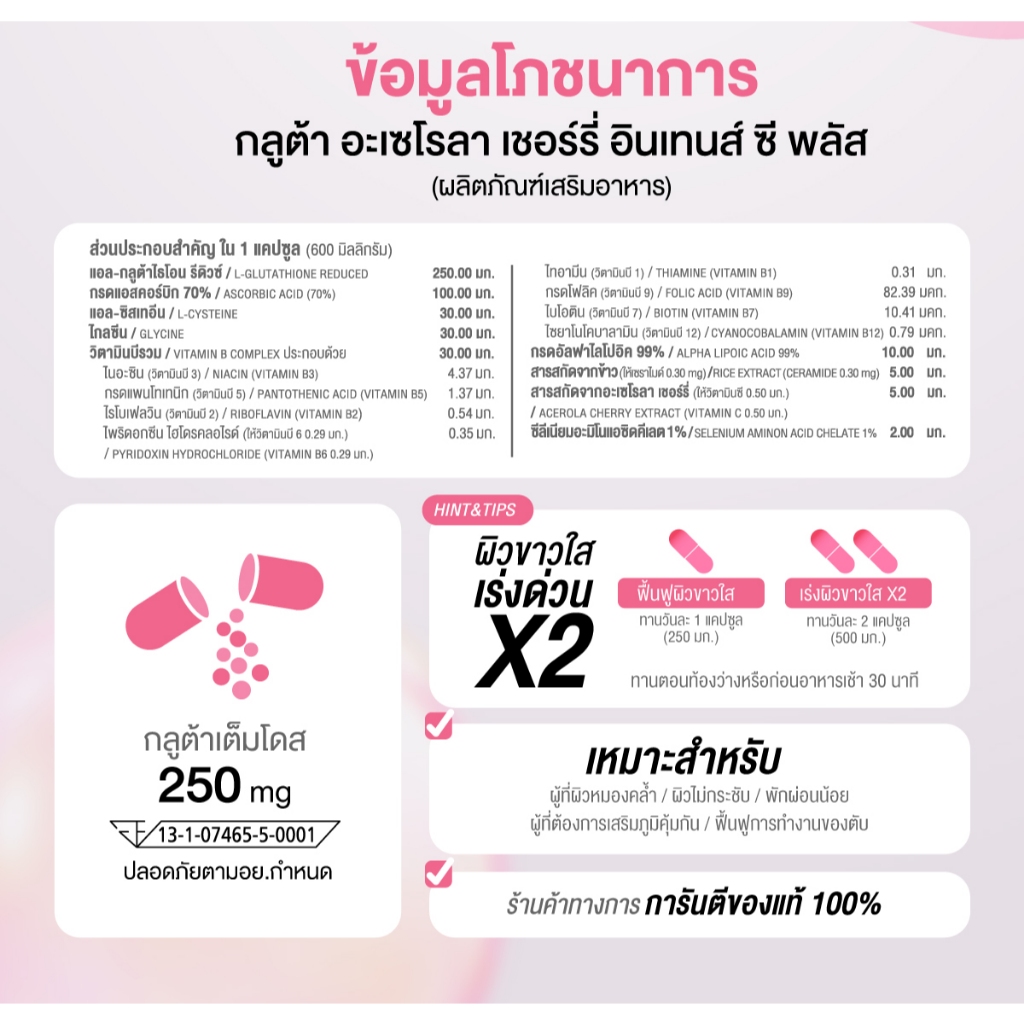 [ 2ซอง ] JARVIT GLUTA ACEROLA CHERRY INTENSE C PLUS 250 mg