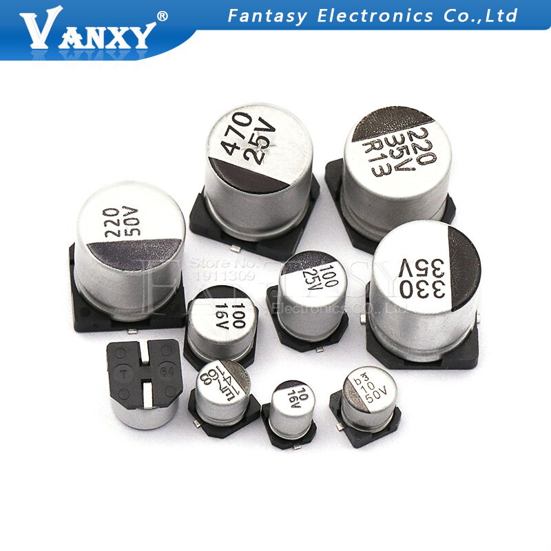 10pcs SMD 10V 16V 25V 35V 47UF 50V 100UF 220UF 470UF 1000UF 10UF 22UF 330UF 2200UF 150UF Aluminum electrolytic capacitor