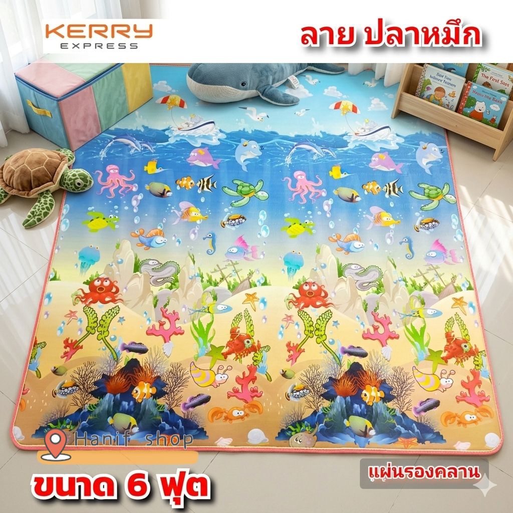 เสื่อรองคลาน 6 ฟุต ( รุ่นใหม่ 175×180 เคลือบสีสด) ไซส์ใหญ่ ลาย 2 ด้าน แต่ละด้าน จะไม่ซ้ำกัน ถูกสุด!!