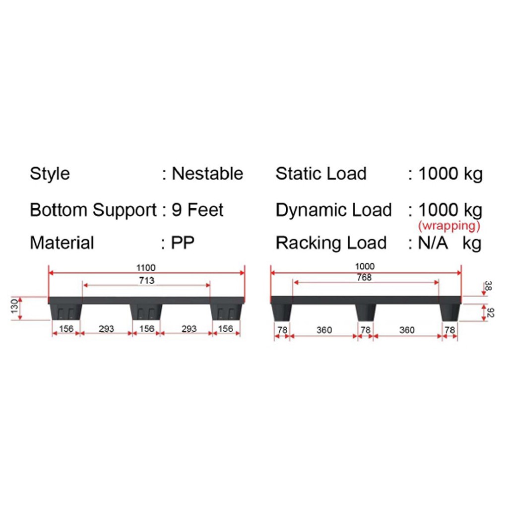 ลิกก้าพาเลทหน้าโปร่ง ขนาด 1000*1100*130 มม. vasihua, วาซิหัว