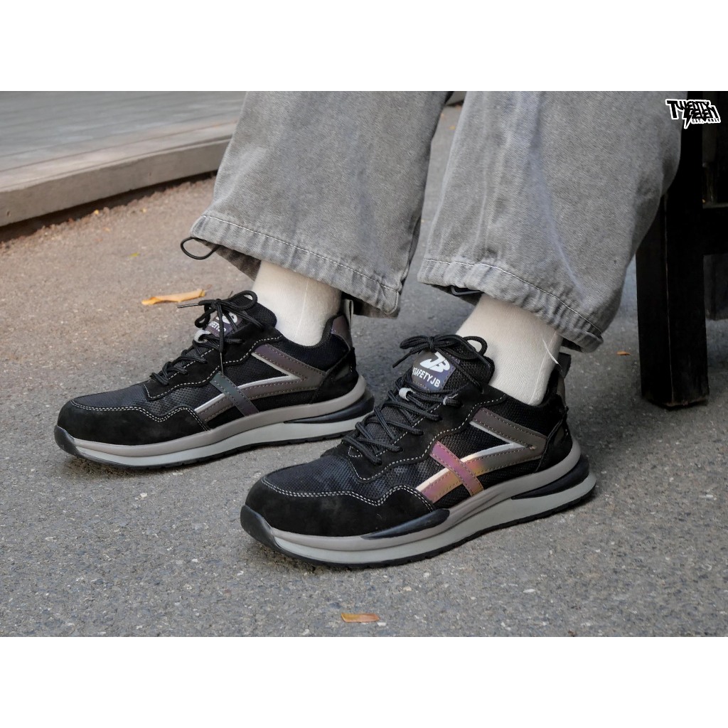 รองเท้าเซฟตี้ หนังชามัวร์ กันน้ำ มีแถบสะท้อนแสง หัวเหล็ก พื้นเคฟล่า พื้นกันลื่นทนต่อสารเคมี ไซส์ใหญ่ 36-48 (รุ่น TGG)