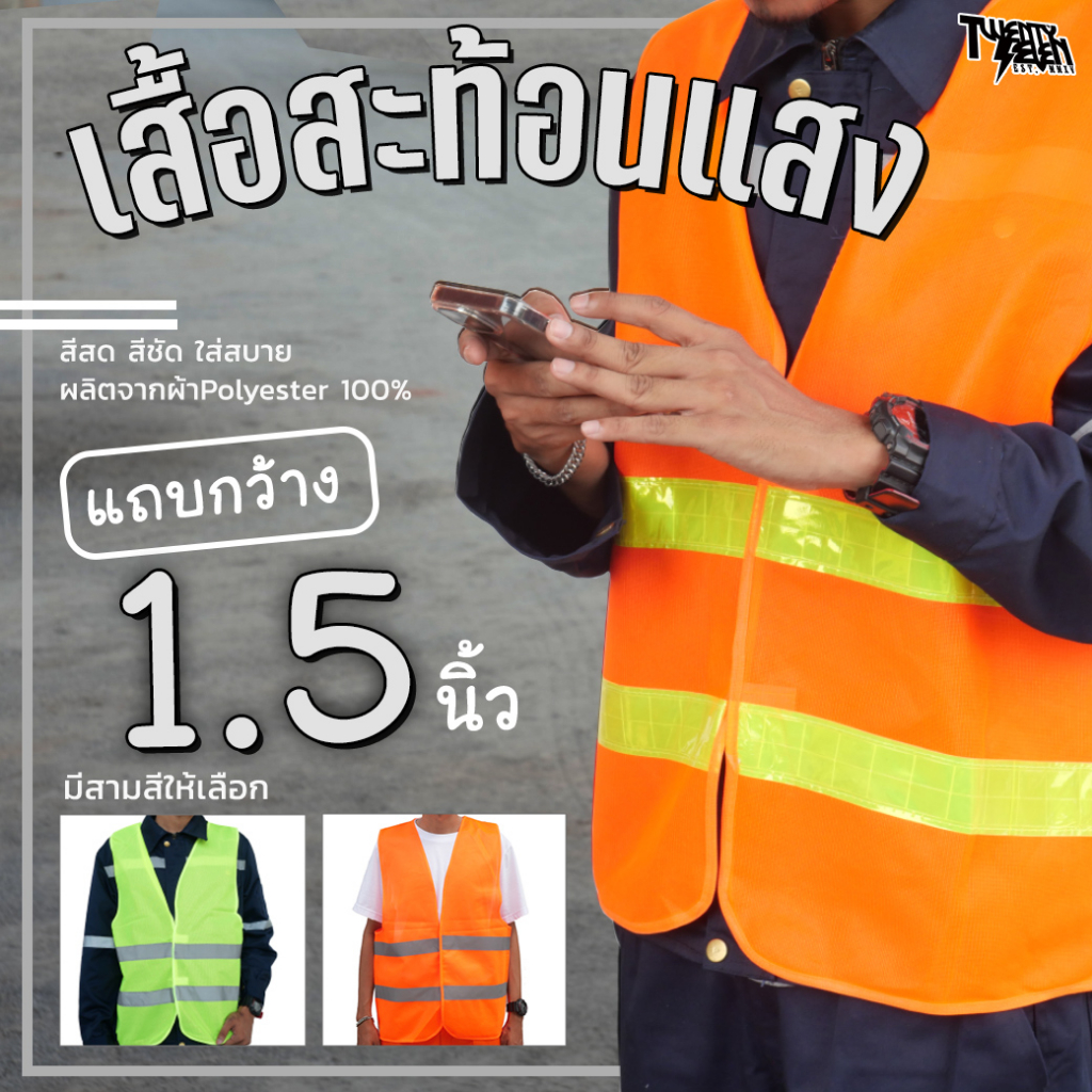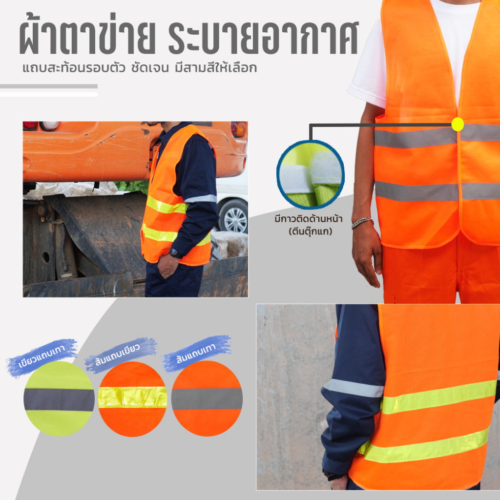เสื้อกั๊กสะท้อนแสง เสื้อจราจร ผ้าตาข่าย(ไม่ร้อน) แถบ 1.5 นิ้ว สกรีนโลโก้ไม่มีขั้นต่ำ ส่งด่วน กทม. (รุ่น R15)