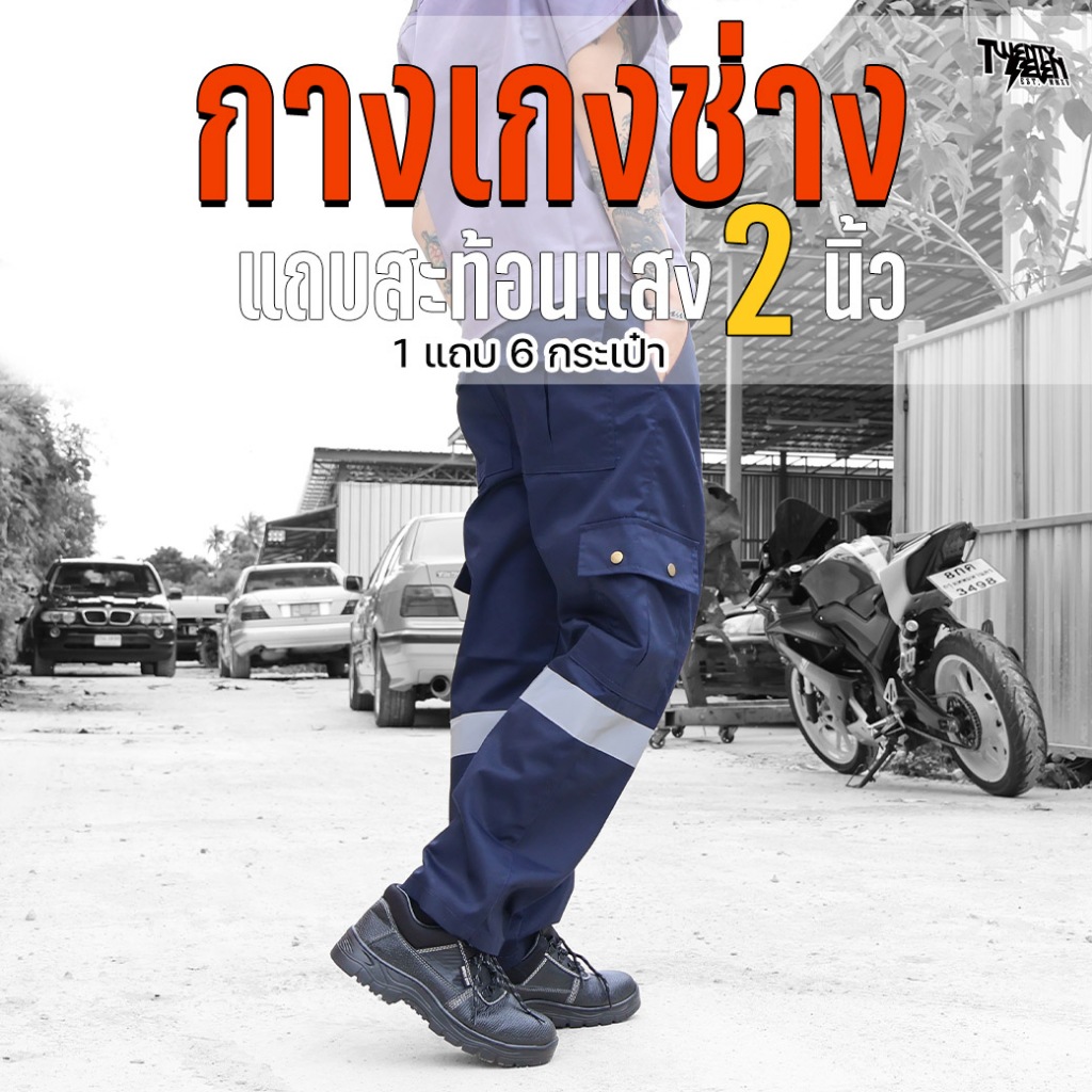 กางเกงช่าง กางเกงคาร์โก้ 6 กระเป๋า ผ้าคอมทวิว กันสะเก็ดไฟ แถบสะท้อนแสงใหญ่ 2 นิ้ว ใส่ทำงาน ไซส์ใหญ่ S-5XL (รุ่น WP)