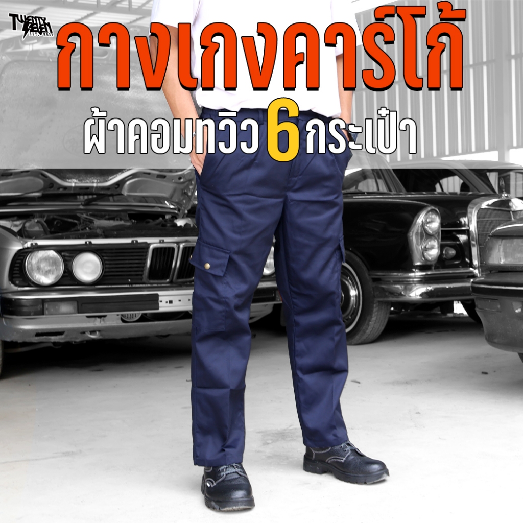 กางเกงช่าง กางเกงคาร์โก้ 6 กระเป๋า ผ้าคอมทวิว กันสะเก็ดไฟ กระดุมทองเหลือง ใส่ทำงาน ไซส์ใหญ่ S-5XL (รุ่น WP4)