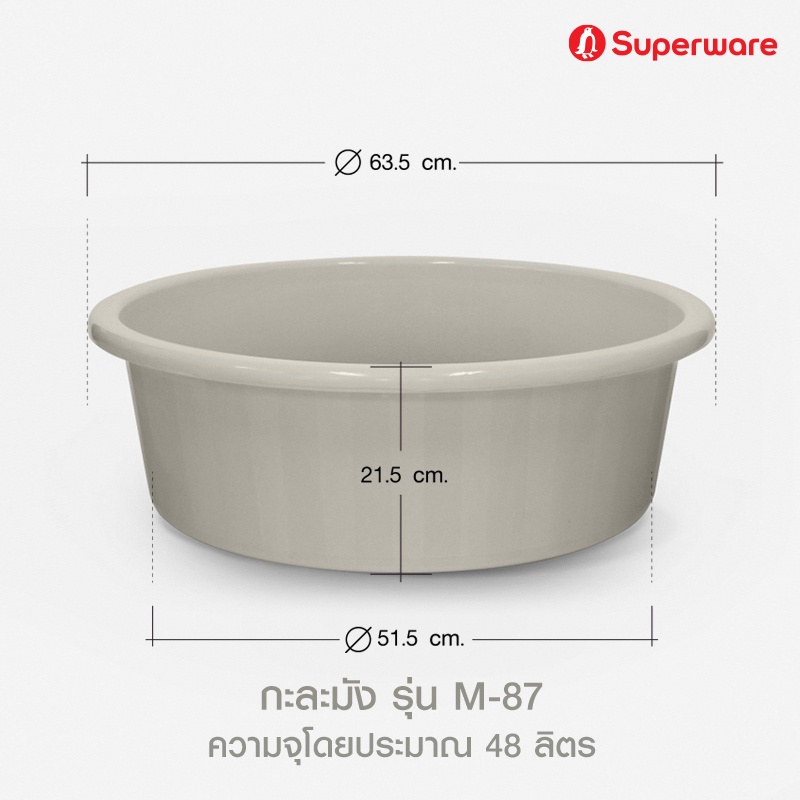 Srithai Superware กะละมังพลาสติก กะละมังซักผ้า ทรงกลมใหญ่ 1 ใบ ขนาด 63.5 ซม. รุ่น M-87