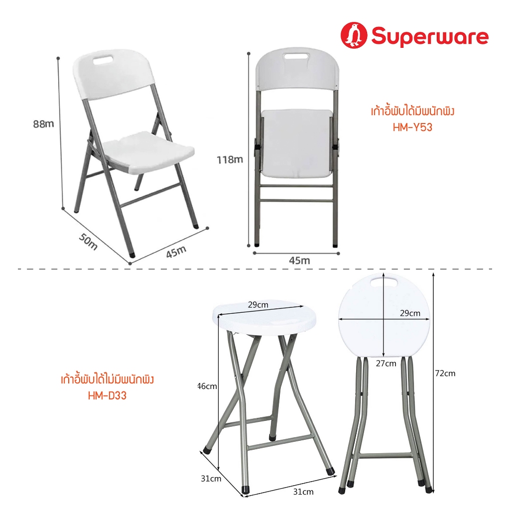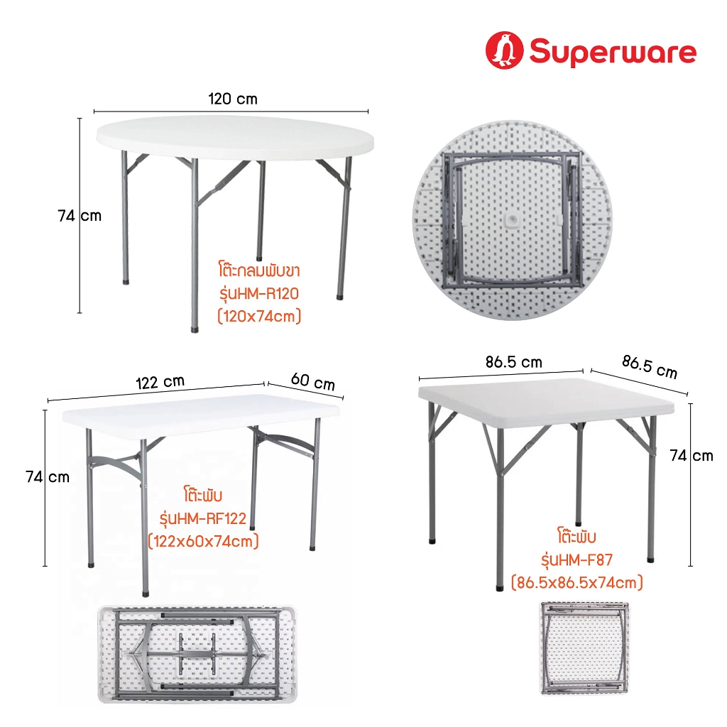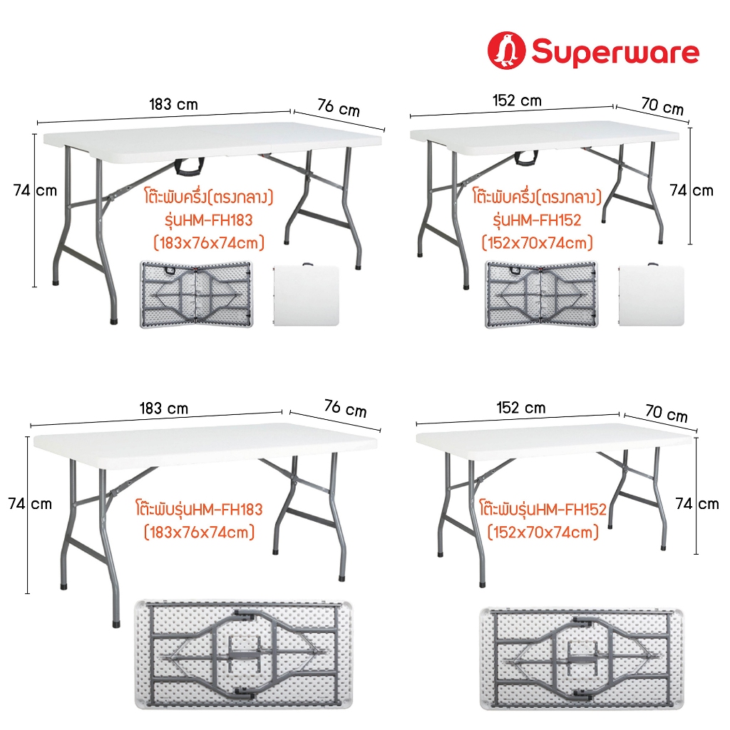 Srithai Superware โต๊ะพับ โต๊ะแคมป์ปิ้ง โต๊ะอเนกประสงค์ โต๊ะปิกนิค โต๊ะพับสนาม ขาเหล็ก 85/120/150/180 ซม.รุ่น HM-RF