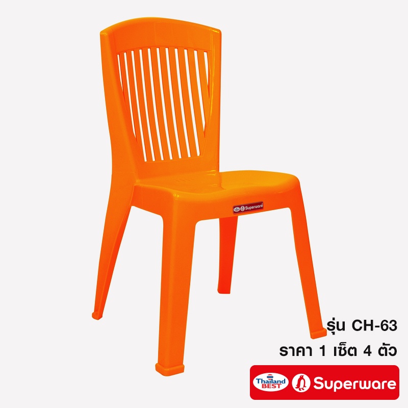 Srithai Superware เก้าอี้พลาสติก เก้าอี้มีพนักพิงรุ่น CH-63 เซ็ต 4 ตัว