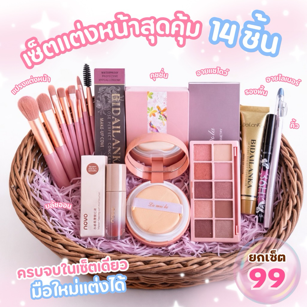 เซ็ตแต่งหน้า ชุดเครื่องสำอางค์ 14 ชิ้น สุดคุ้ม โทนสีสวย ได้ครบเซต ใช้ได้ทุกสีผิว ตา แก้ม ปาก ครบสุดๆ กันน้ำ