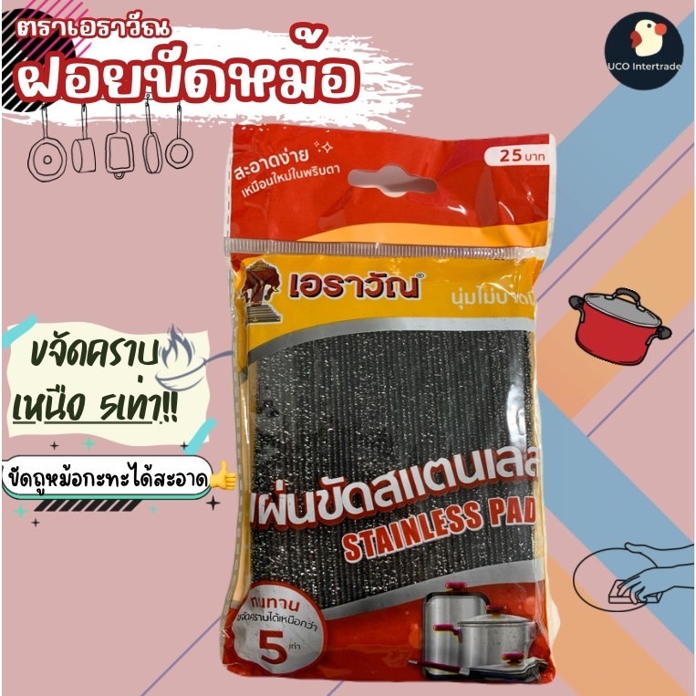 *คุ้มยกแผง* ฝอยขัดหม้อ ฝอ ยสแตนเลส ที่ขัดหม้อ ตราเอราวัณ 13*9 ซม 1แผง/12ชิ้น ใยขัดกระทะ อย่างหนา แข็งแรง ใช้ในบ้าน
