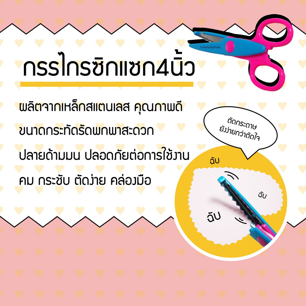 *คมตัดง่าย ไว้ตัดใจเธอ* กรรไกรซิกแซก กรรไกรฟันปลา 4 นิ้ว ตัดกระดาษ สแตนเลสเกรดAAA ปลายมนปลอดภัย สแตนเลสเกรดAAA