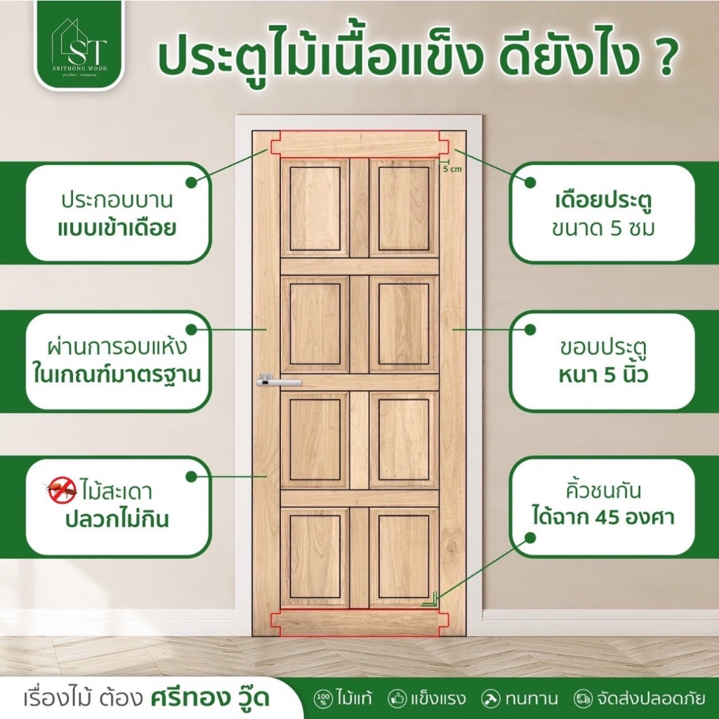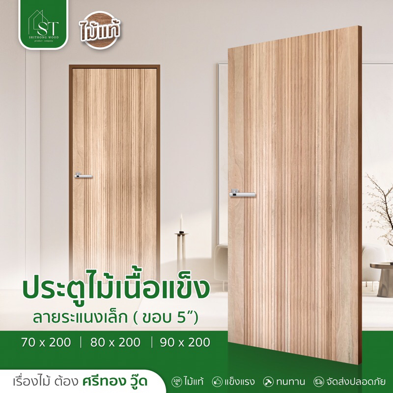 [ ส่วนลด 20%⚡ ] STWOOD ประตูไม้เนื้อแข็ง ลายระแนงเล็ก ประตูไม้ ไม้เนื้อแข็ง ประตูบ้าน มีหลายขนาด ราคาโรงงาน ลายโมเดิร์น