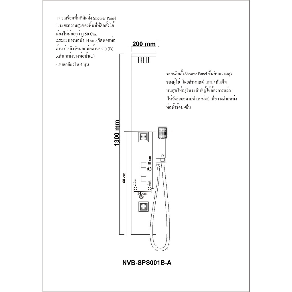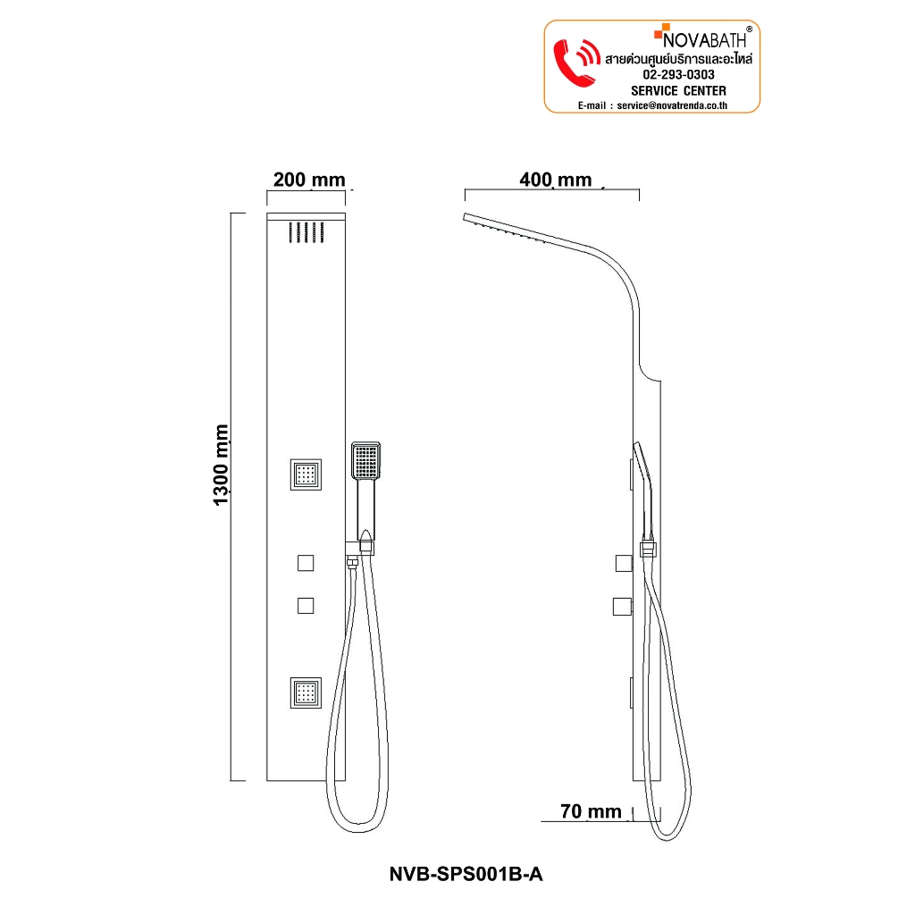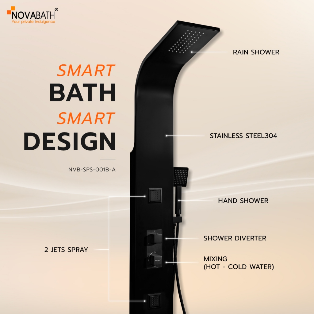 NOVABATH SHOWER PANEL สีดำ รุ่น NVB-SPS-001B ชุดฝักบัวอาบน้ำ