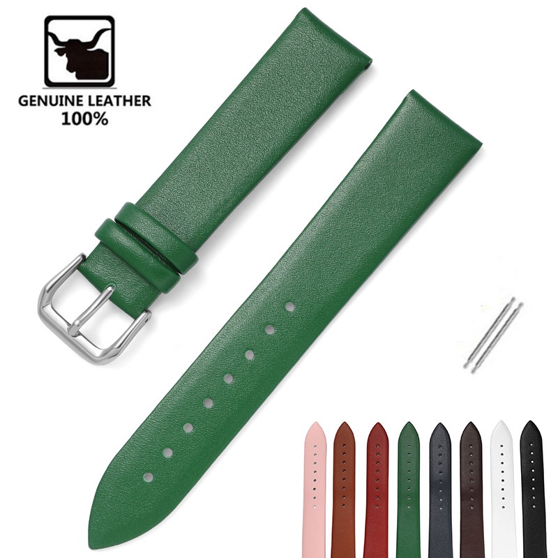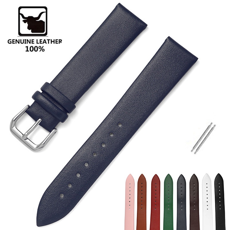 สายนาฬิกาข้อมือ หนังวัวแท้ แบบนิ่ม แบบบาง ขนาด 8 มม. 10 มม. 12 มม. 14 มม. 16 มม. 18 มม. 20 มม. 22 มม. สําหรับผู้หญิง และผู้ชาย
