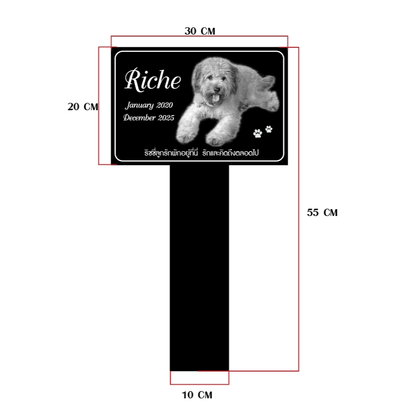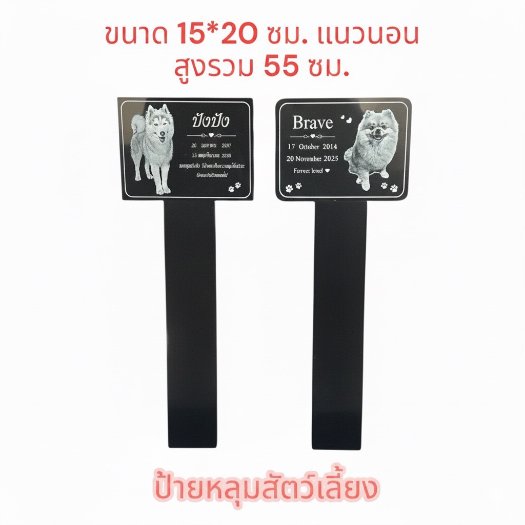 งานเลเซอร์ป้ายหลุมสัตว์เลี้ยงแบบปักพื้นดิน 🐾 แข็งแรง ทนแดดทนฝน แบบปักดิน