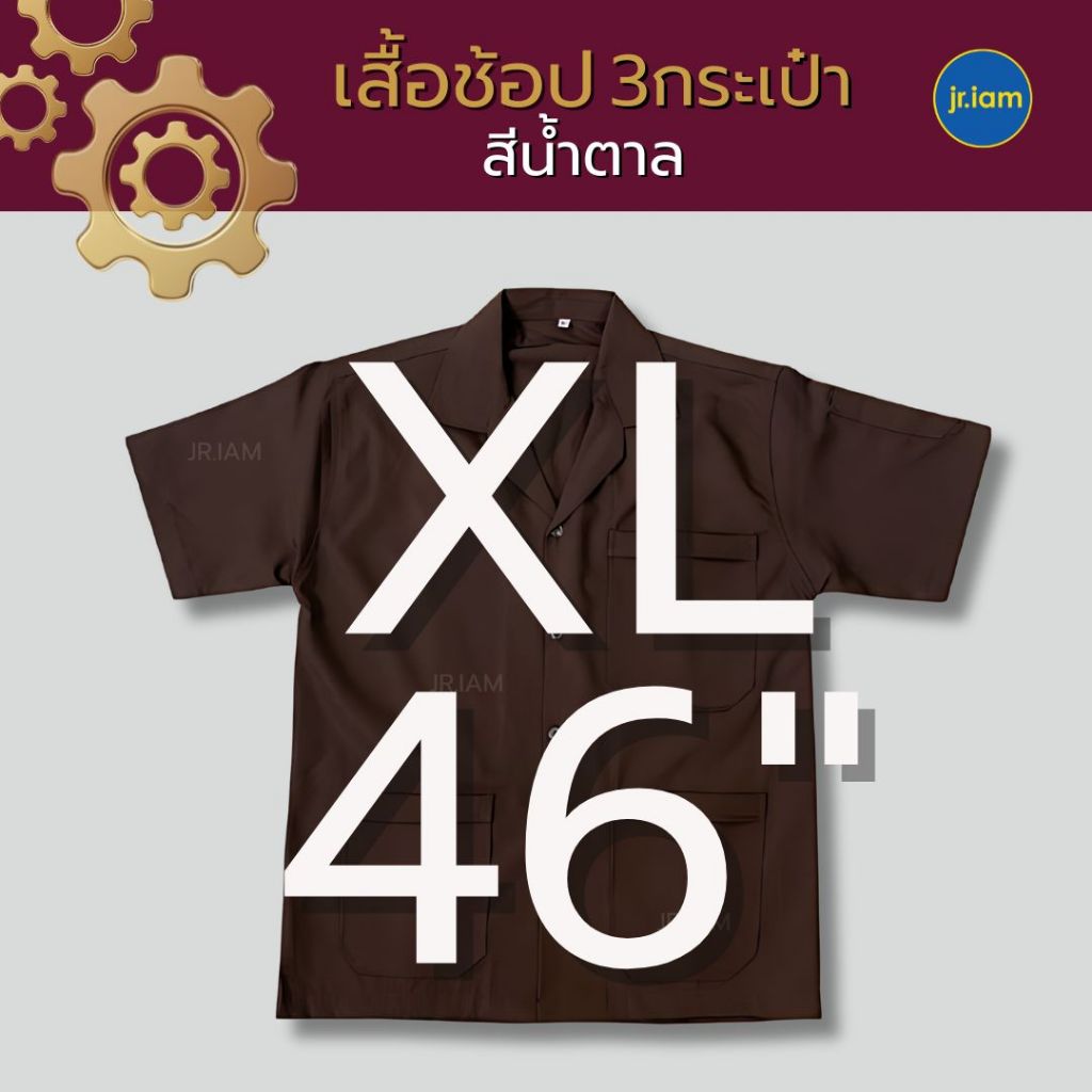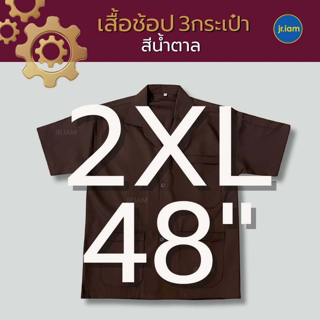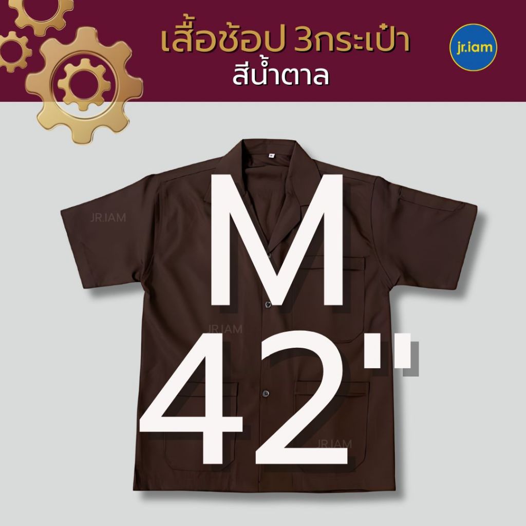 เสื้อช็อปเทคนิค สีน้ำตาล อก40-48 เสื้อช่าง 3 กระเป๋า เสื้อช๊อป