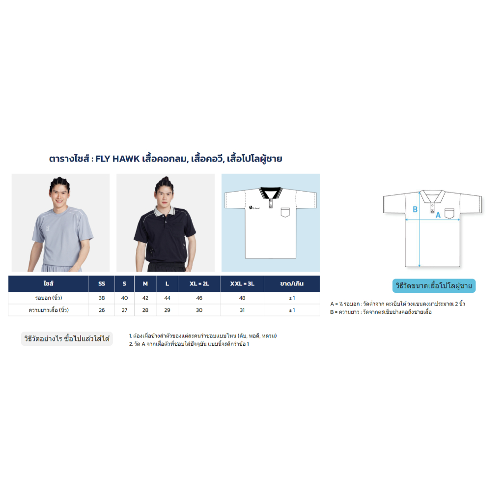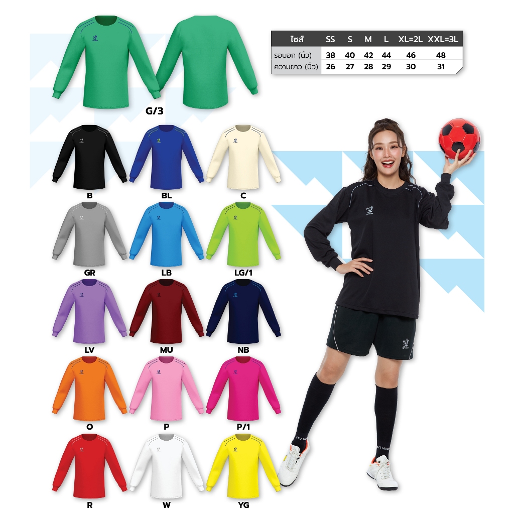 [A972] เสื้อกีฬาคอวีกลมแขนยาวผู้ใหญ่ FLY HAWK